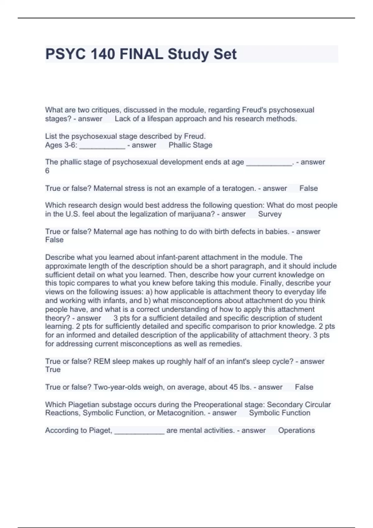PSYC 140 FINAL Study Set Questions and Answers 100% correct