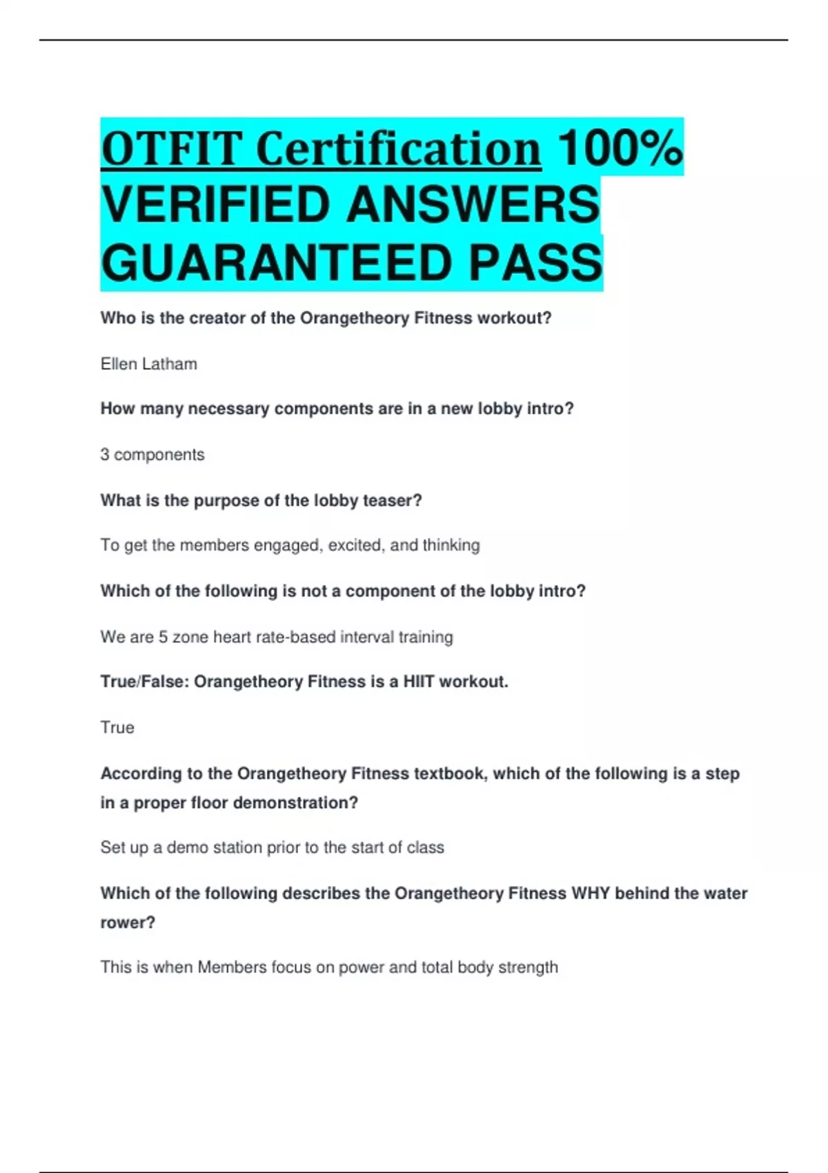 OTFIT Certification 100% VERIFIED ANSWERS GUARANTEED PASS