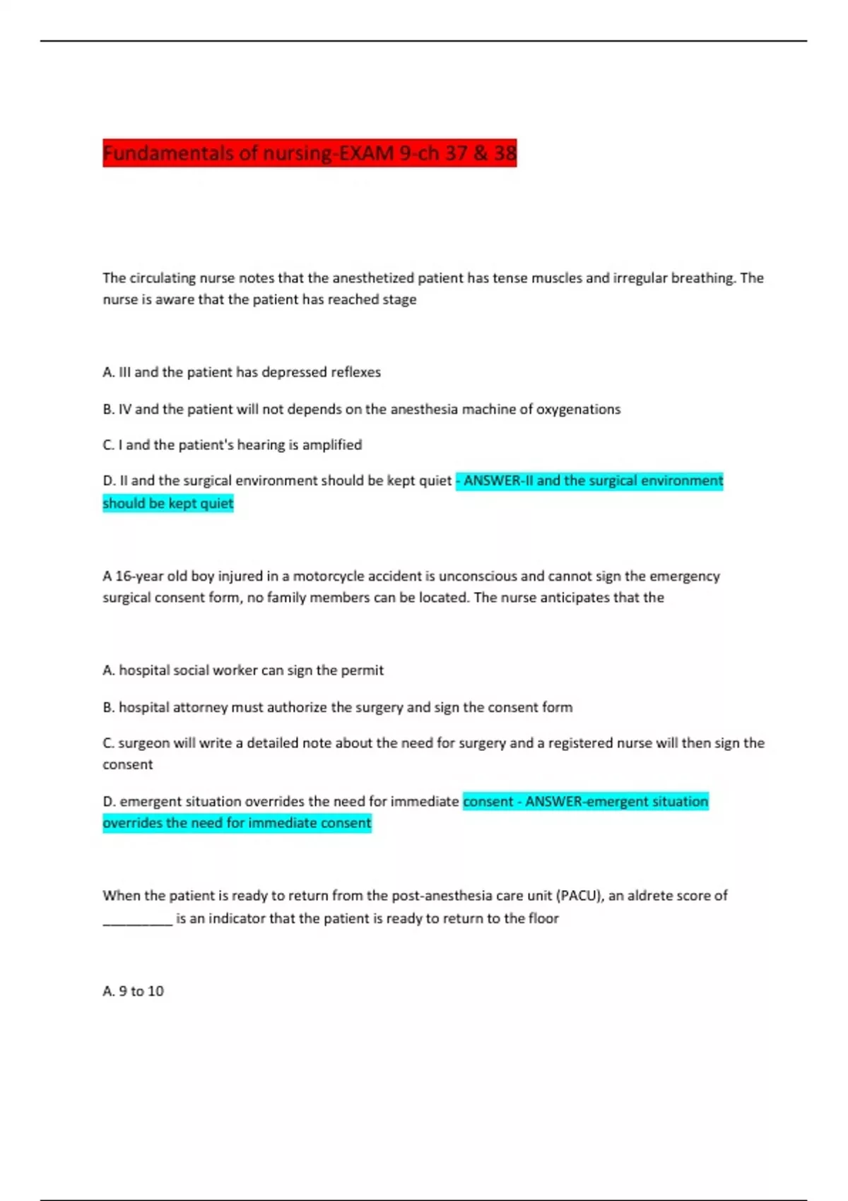 Fundamentals of nursing-EXAM 9-ch 37 & 38