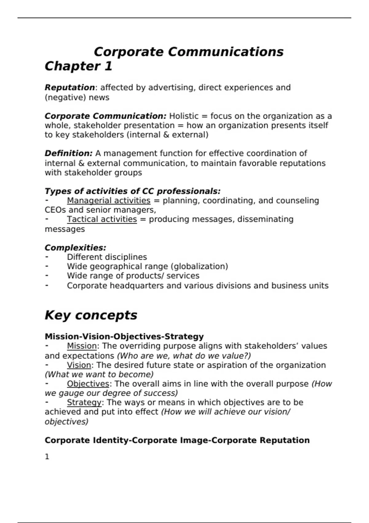 Corporate Communication: Holistic = focus on the organization as a whole,