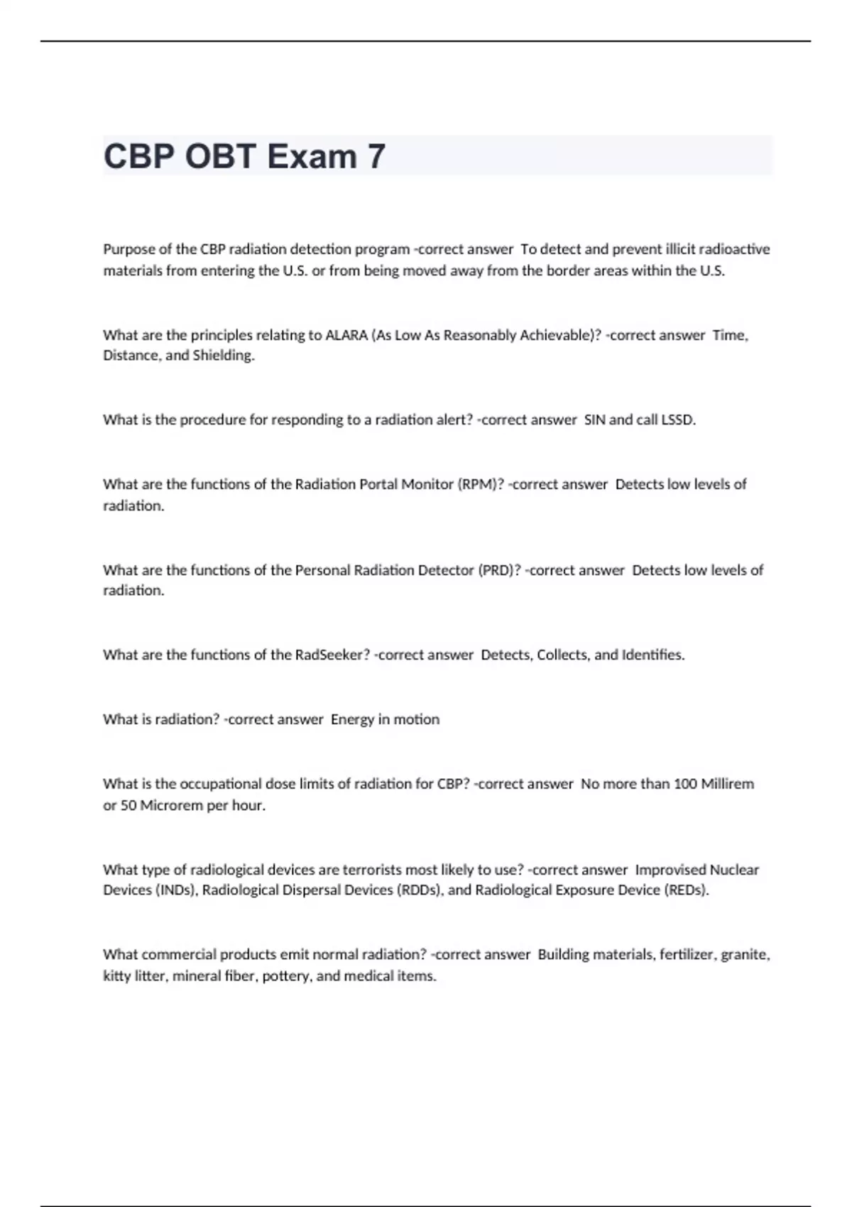 CBP OBT Exam 7 2024 Updated Question And Answers.