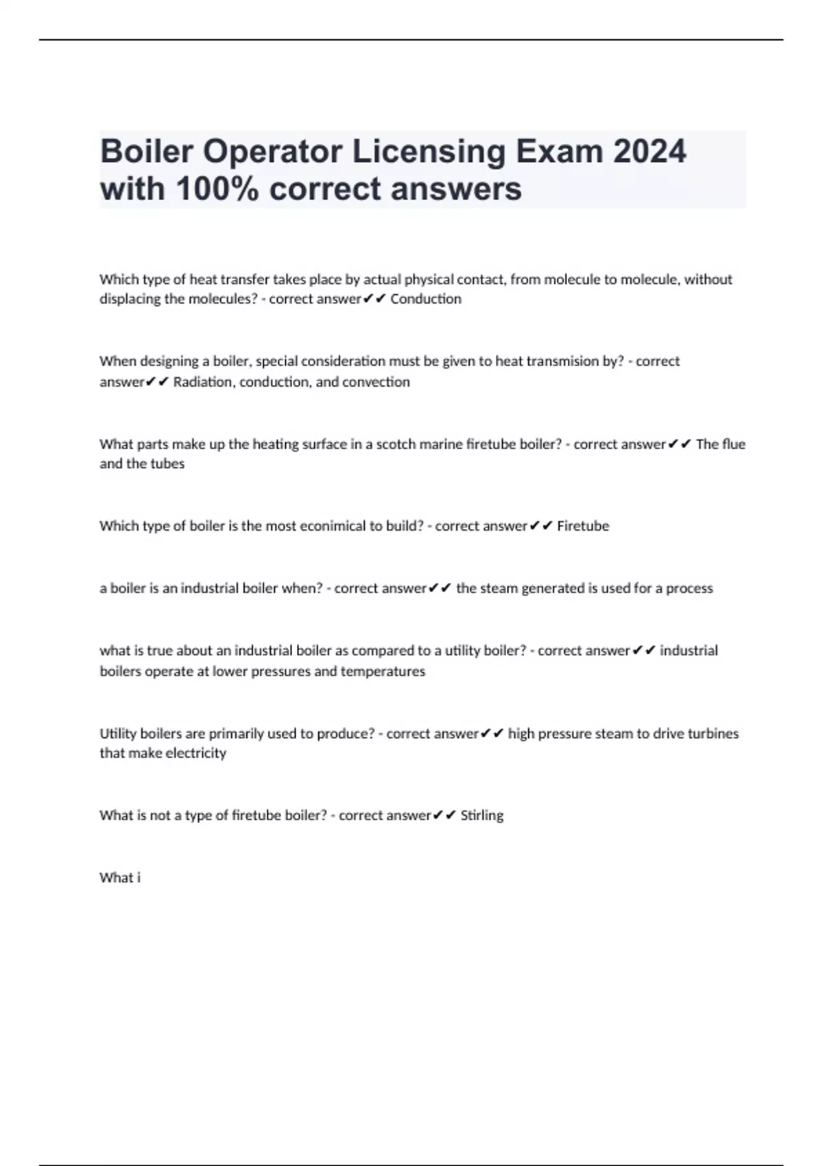 Boiler Operator Licensing Exam 2024 with 100% correct answers