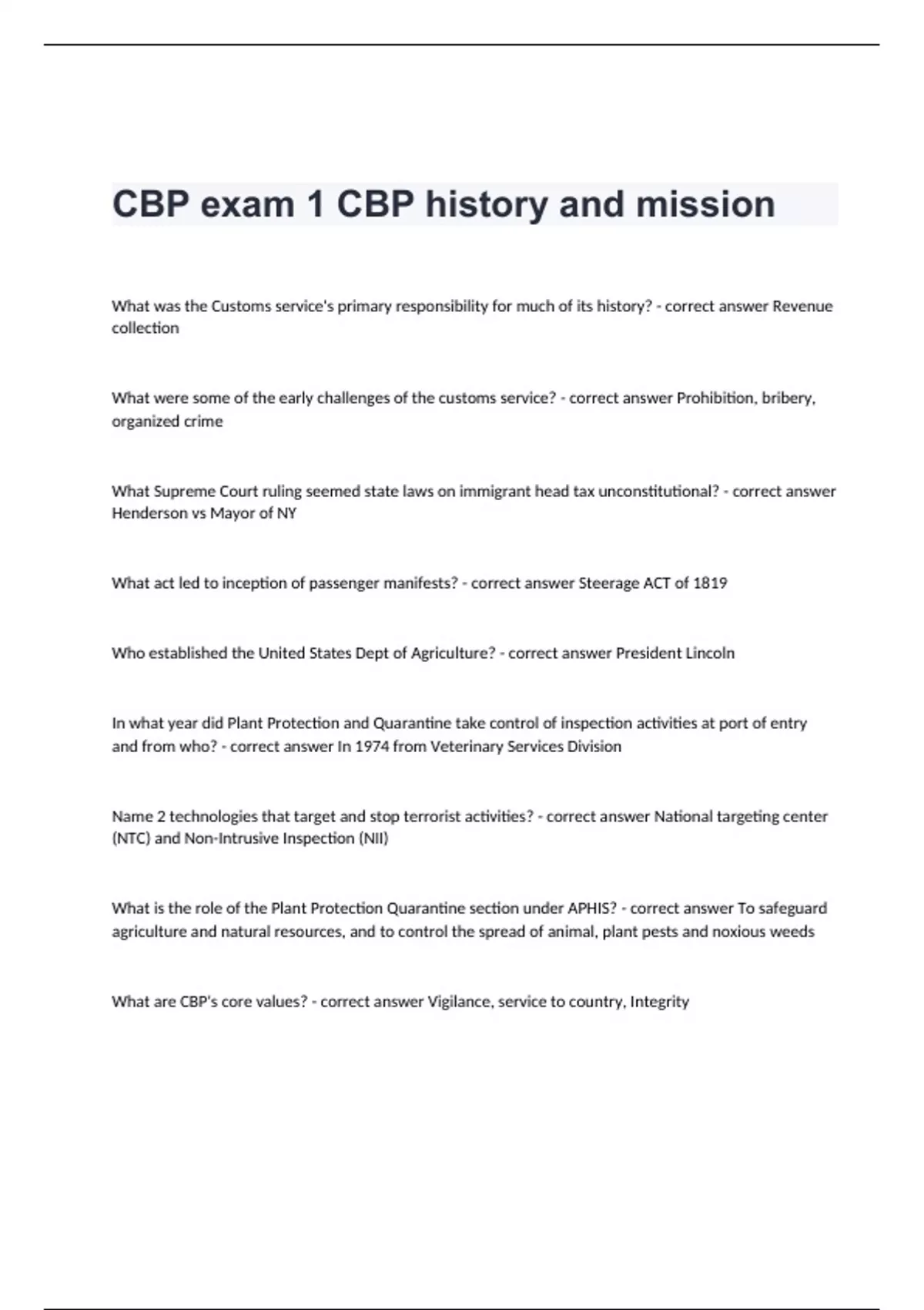 CBP exam 1 CBP history and mission Latest Solution Guide With Verified Answers.