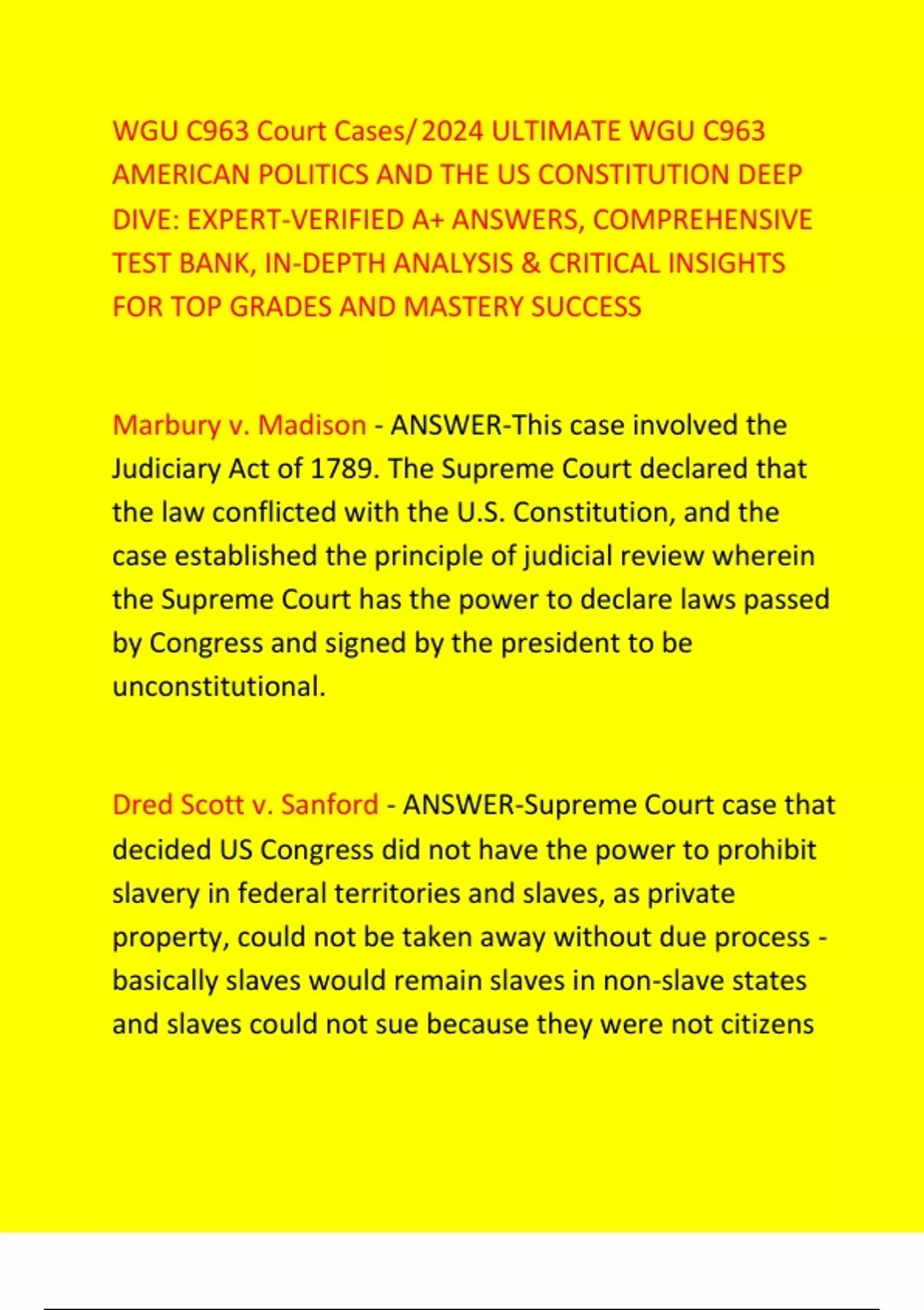 - WGU C963 Court Cases/2024 ULTIMATE WGU C963 AMERIC