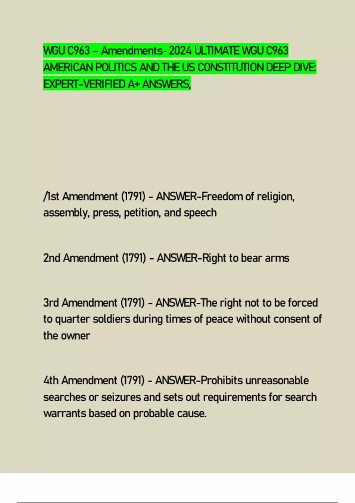WGU C963 – Amendments- 2024 ULTIMATE WGU C963 AMERICAN POLITICS AND THE US CONSTITUTION DEEP DIVE: EXPERT-VERIFIED A+ ANSWERS,