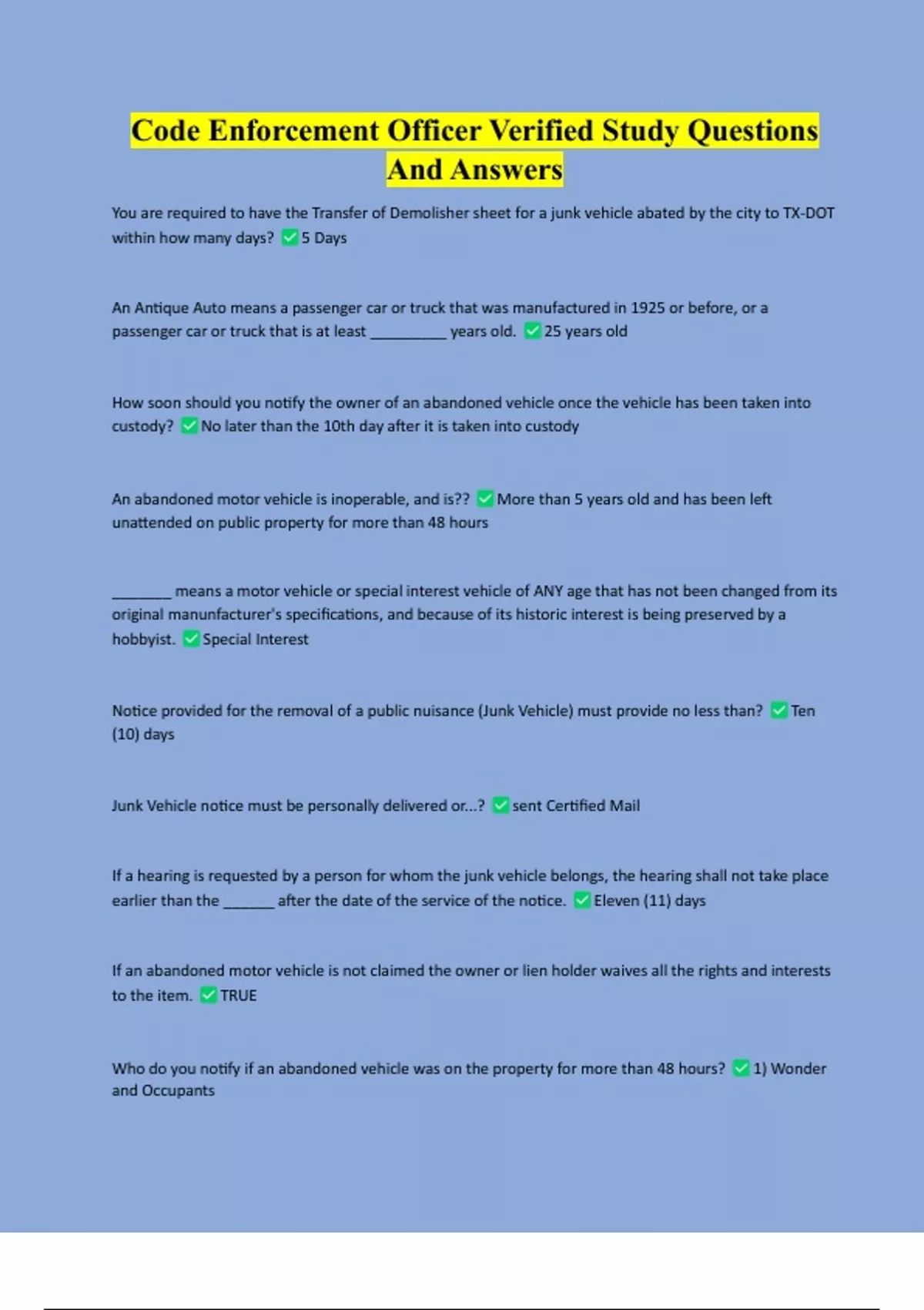 Code Enforcement Officer Verified Study Questions And Answers Code Enforcement Officer Verified Study Questions And Answers