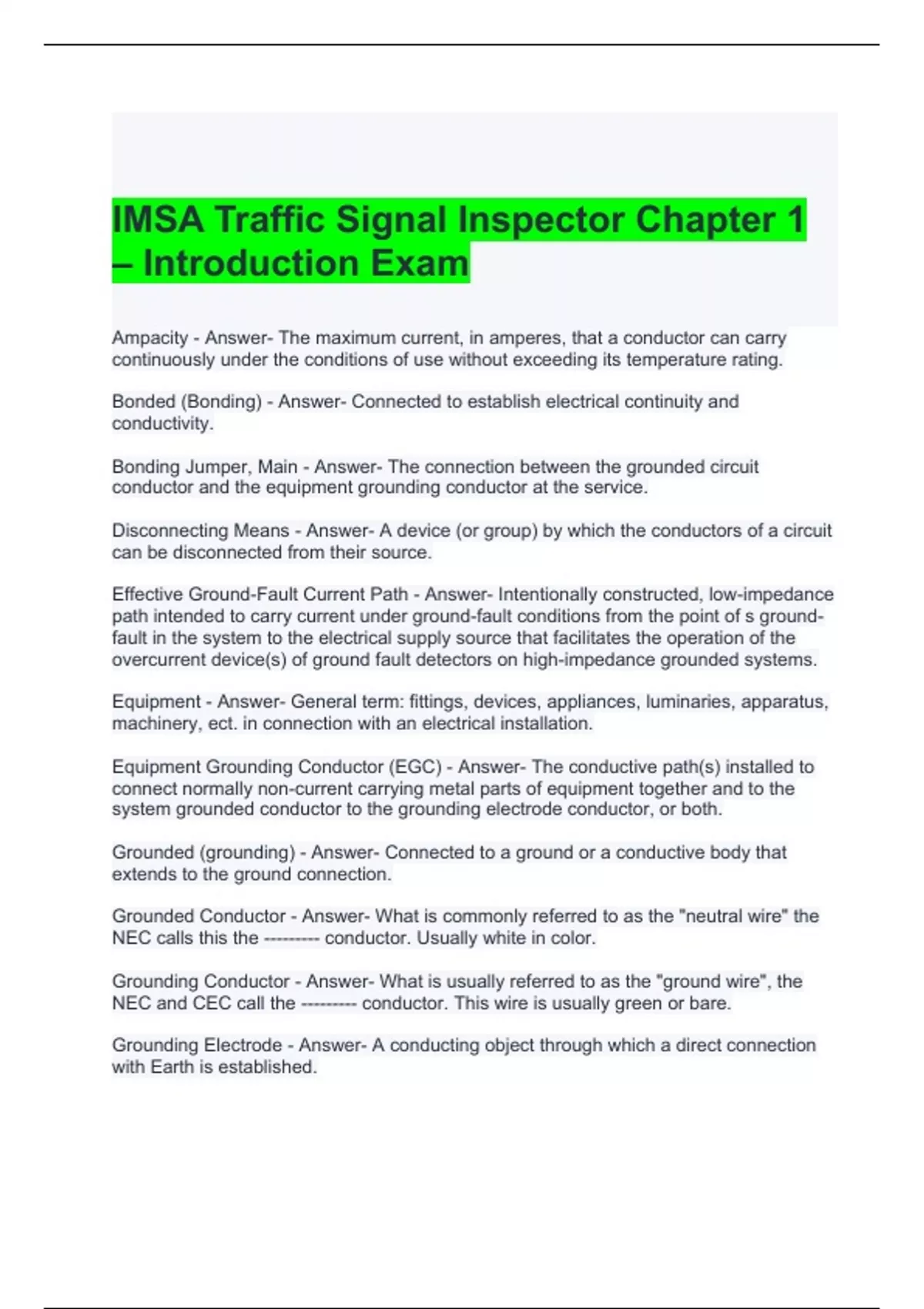 IMSA Traffic Signal Inspector Chapter 1 – Introduction Exam 2024 Questions and Answers