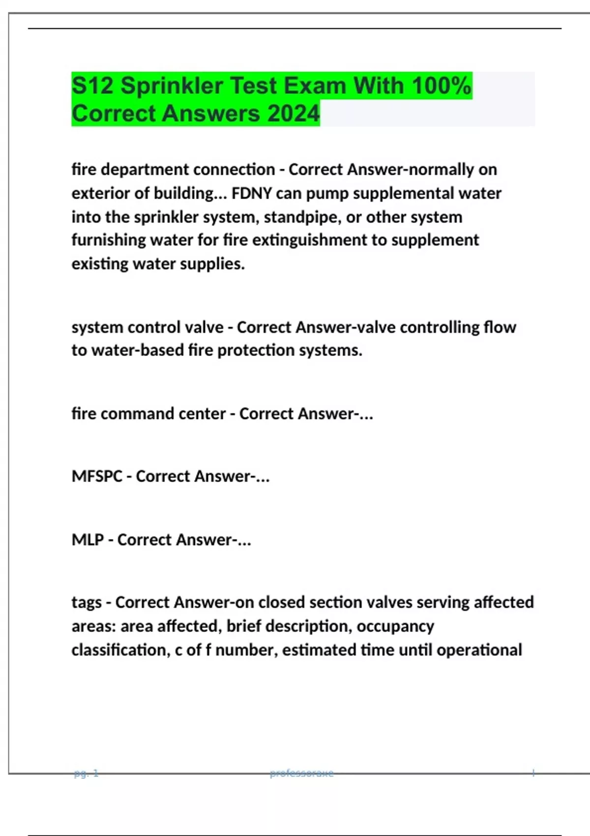 S12 Sprinkler Test Exam With 100% Correct Answers 2024