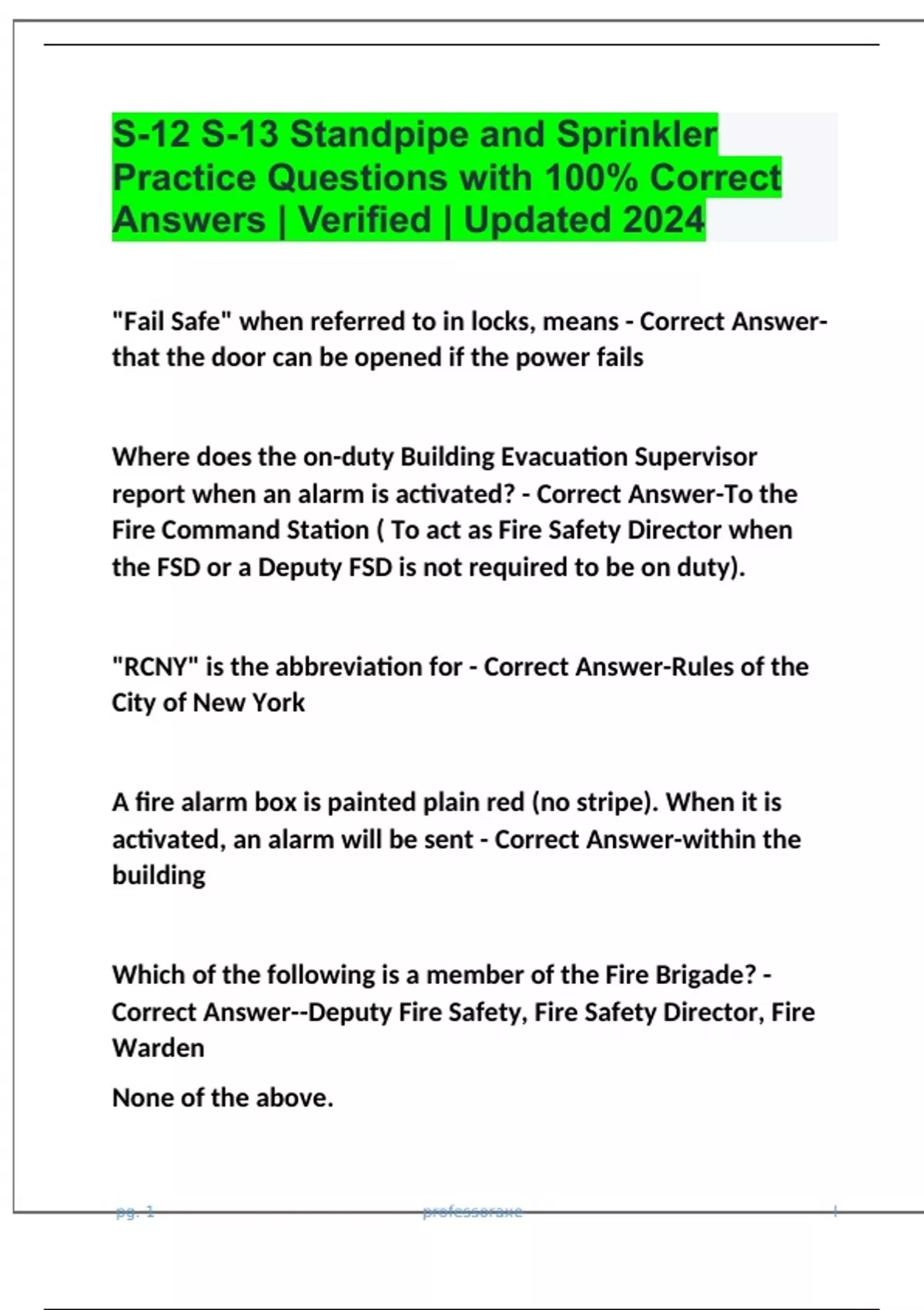 S-12 S-13 Standpipe and Sprinkler Practice Questions with 100% Correct Answers | Verified | Updated 2024