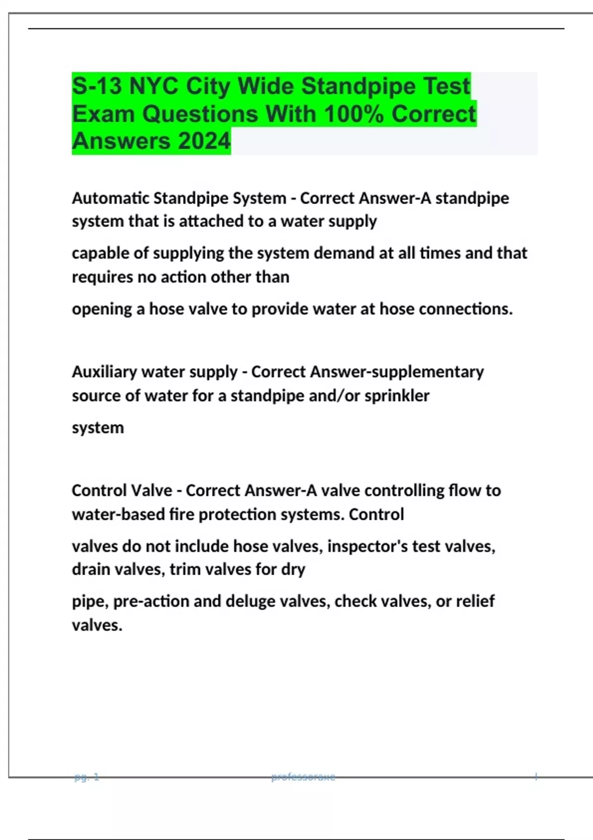 S-13 NYC City Wide Standpipe Test Exam Questions With 100% Correct Answers 2024