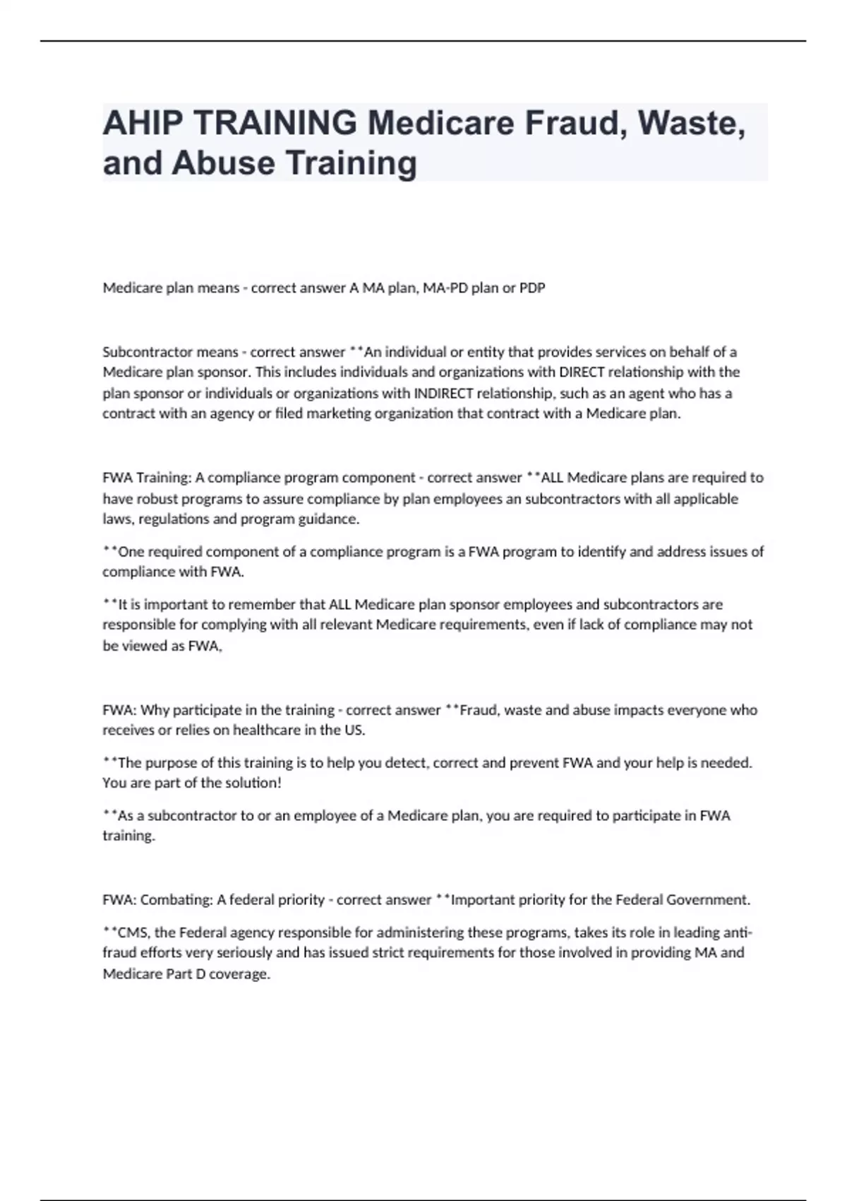 AHIP (Medicare) 2024 Exam#1 With Complete Questions And Answers Verified.