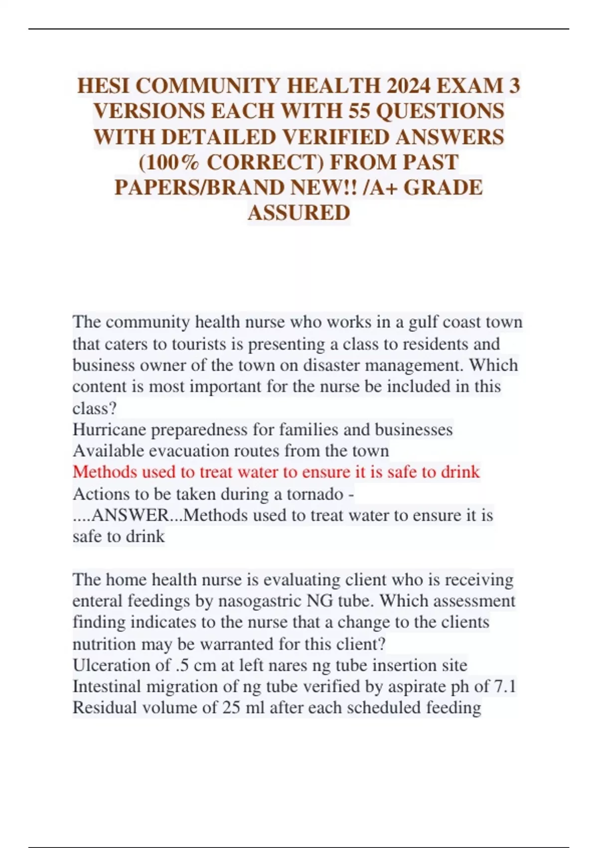 HESI COMMUNITY HEALTH 2024 EXAM 3 VERSIONS EACH WITH 55 QUESTIONS WITH DETAILED VERIFIED ANSWERS (100% CORRECT) FROM PAST PAPERS/BRAND NEW!! /A+ GRADE ASSURED