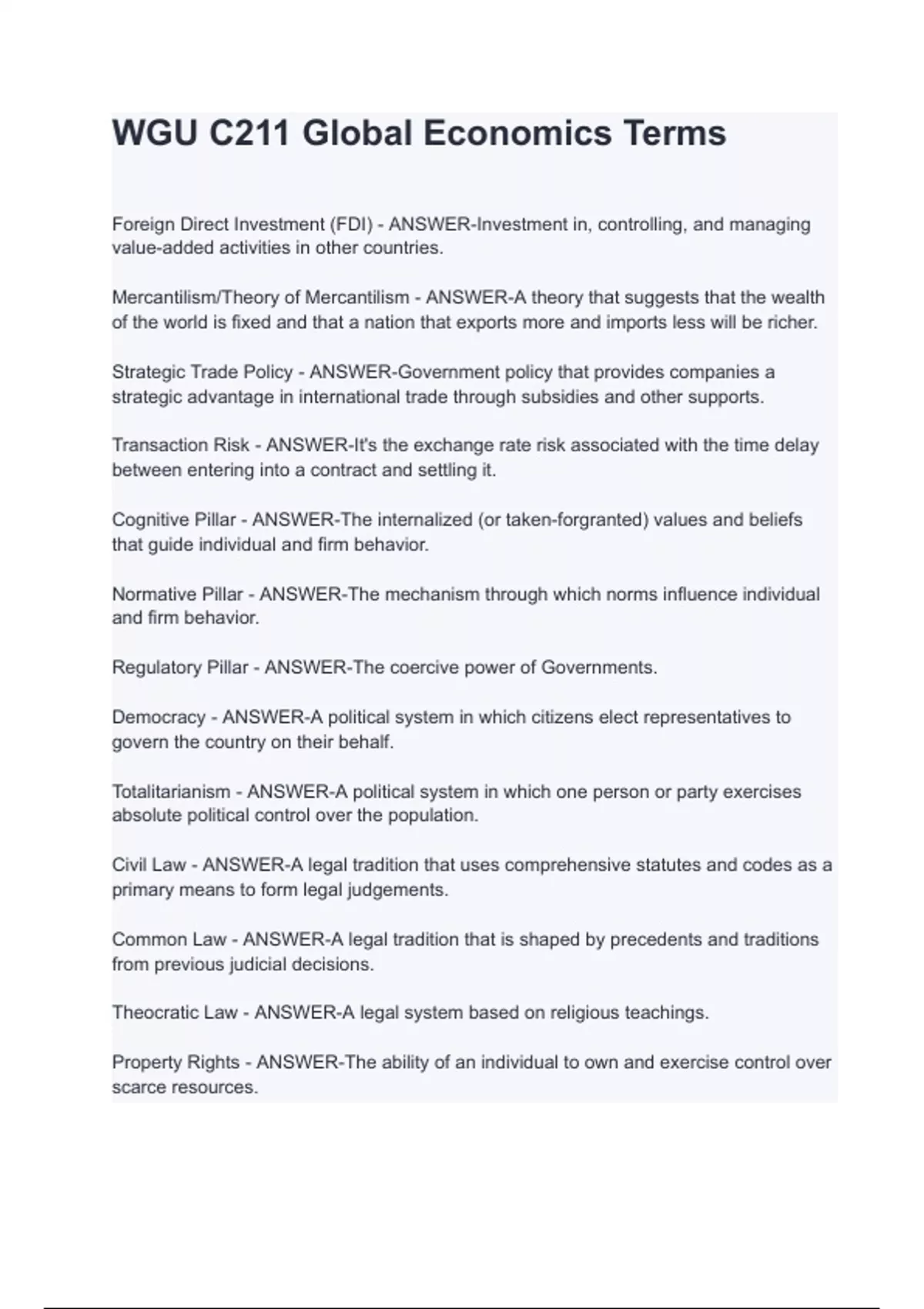 WGU C211 Global Economics Terms Questions and Answers Latest (2023 / 2024) (Verified Answers)