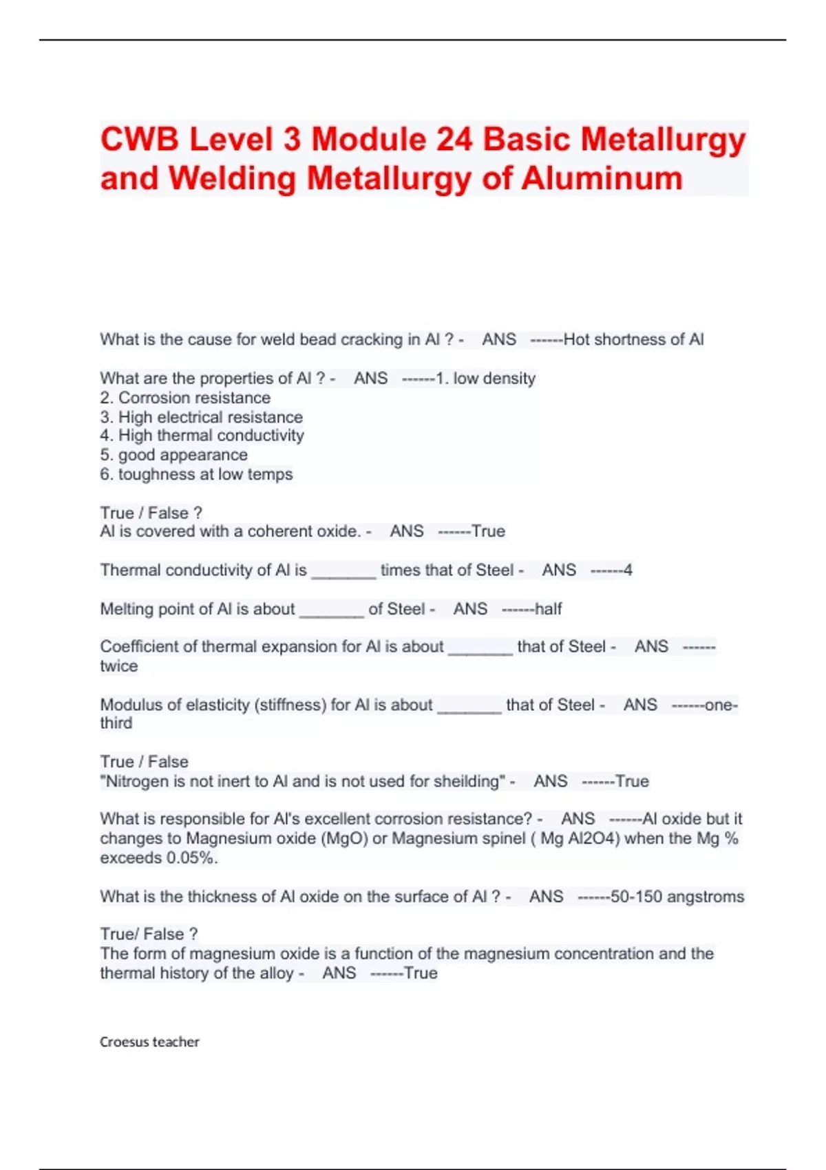 CWB Level 3 Module 24 Basic Metallurgy and Welding Metallurgy of Aluminum