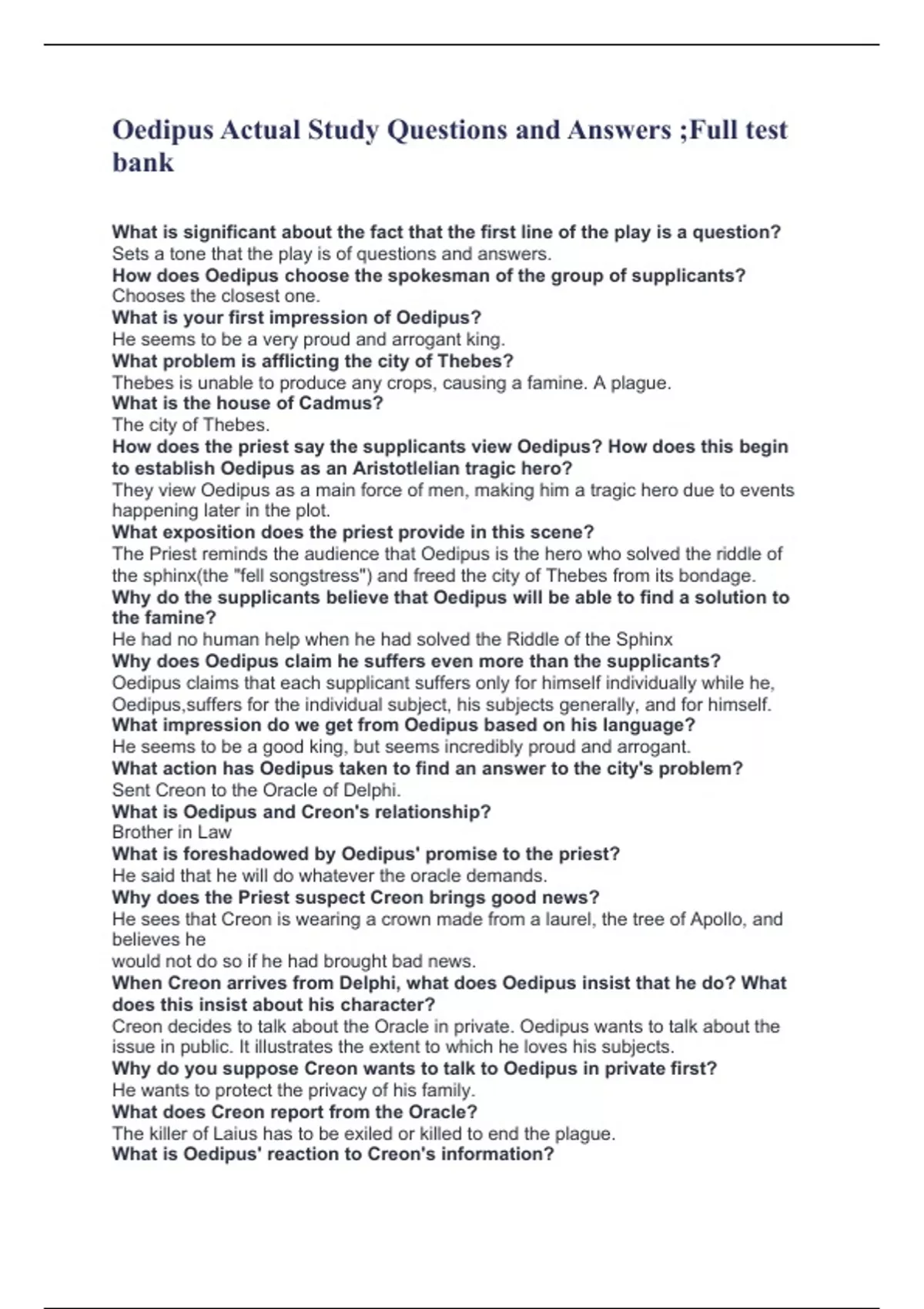 Oedipus Actual Study Questions and Answers ;Full test bank