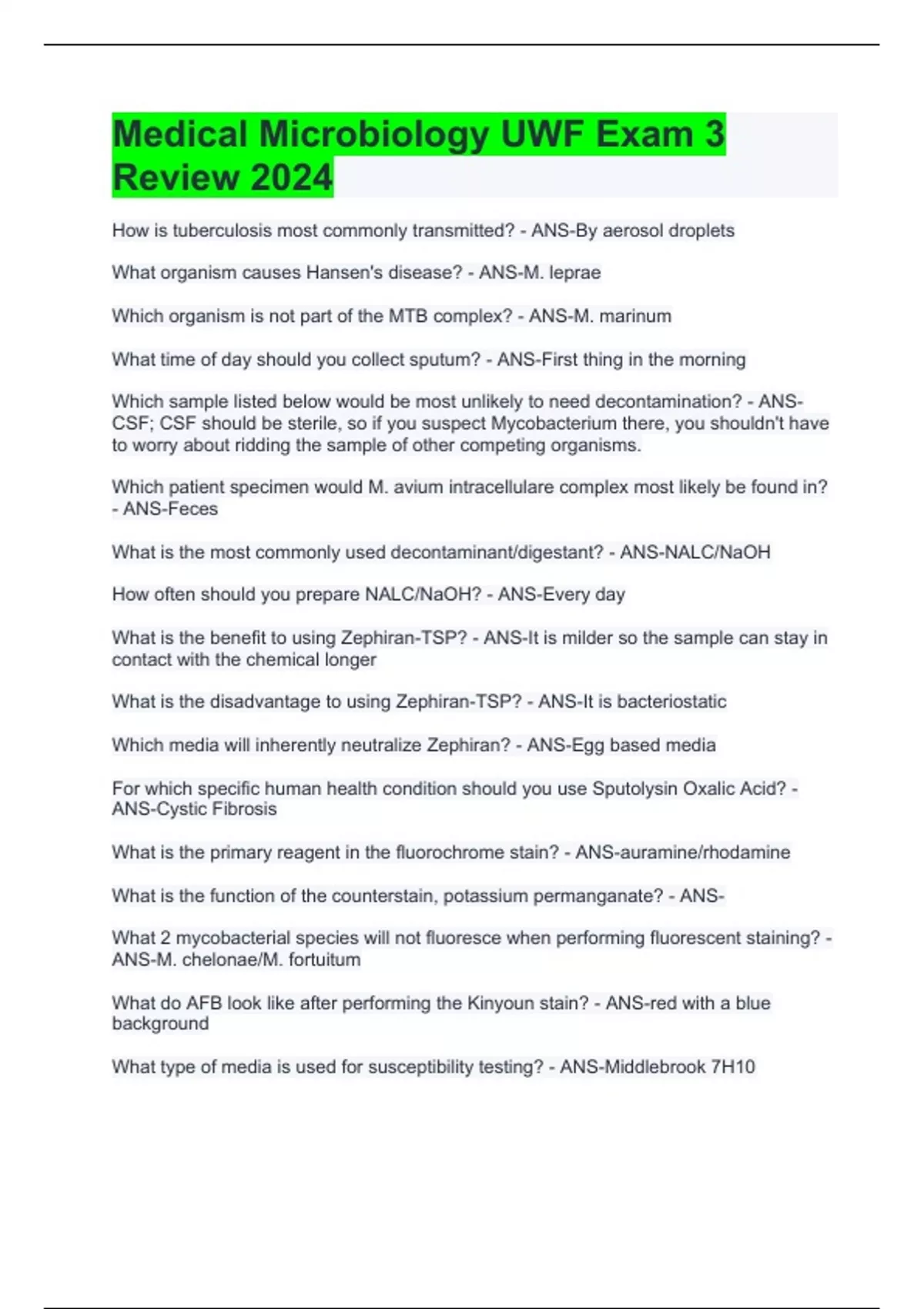 Medical Microbiology UWF Exam 3 Review Solved 2024