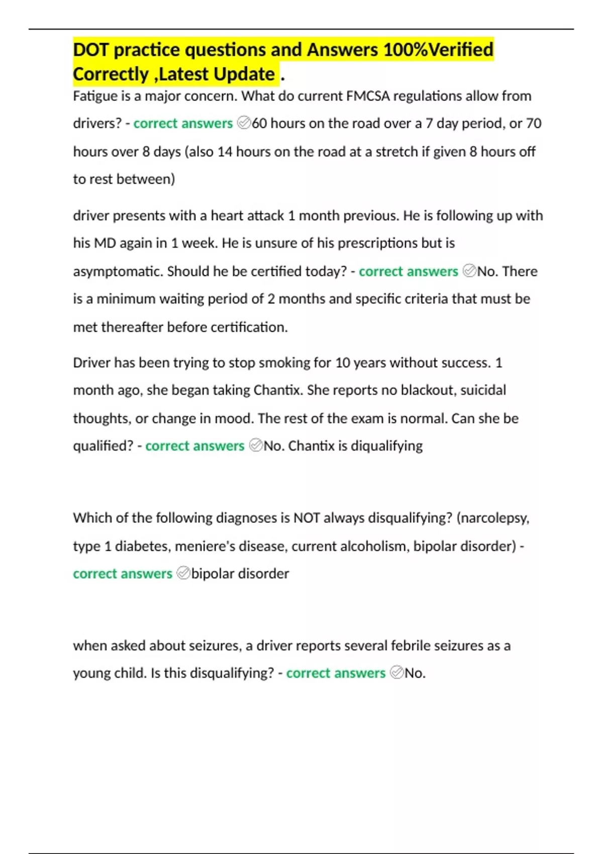 DOT practice questions and Answers 100%Verified Correctly ,Latest Update .