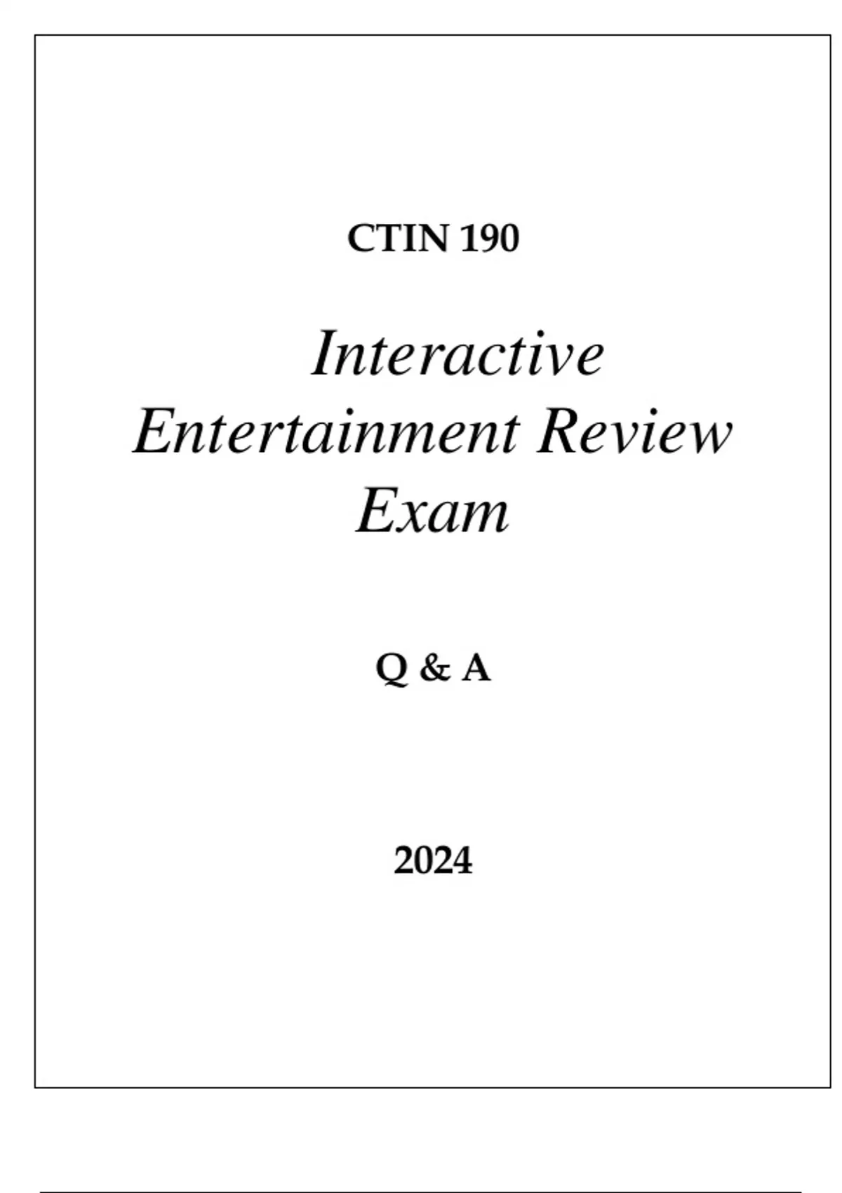 CTIN 190 INTERACTIVE ENTERTAINMENT REVIEW EXAM Q & A 2024 USC.