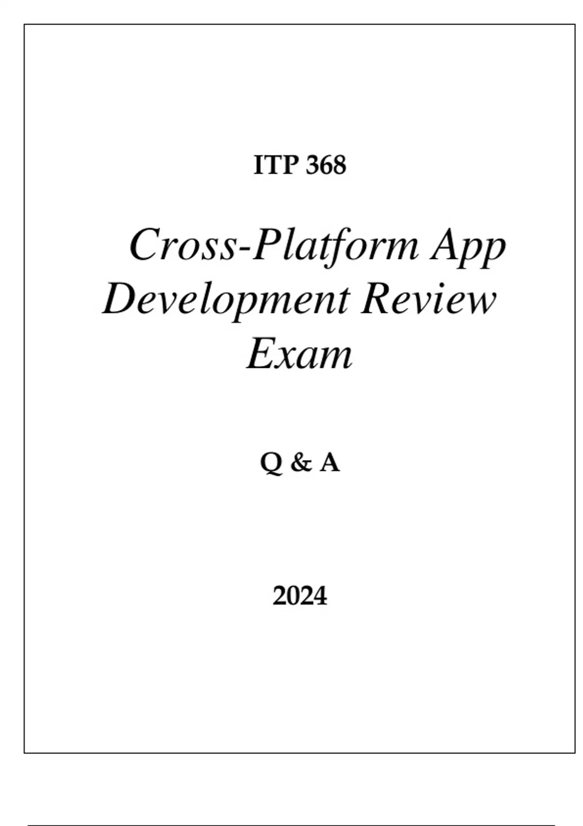 ITP 368 CROSS PLATFORM APP DEVELOPMENT REVIEW EXAM Q & A 2024 USCITP 368 CROSS PLATFORM APP DEVELOPMENT REVIEW EXAM Q & A 2024 USCITP 368 CROSS PLATFORM APP DEVELOPMENT REVIEW EXAM Q & A 2024 USC