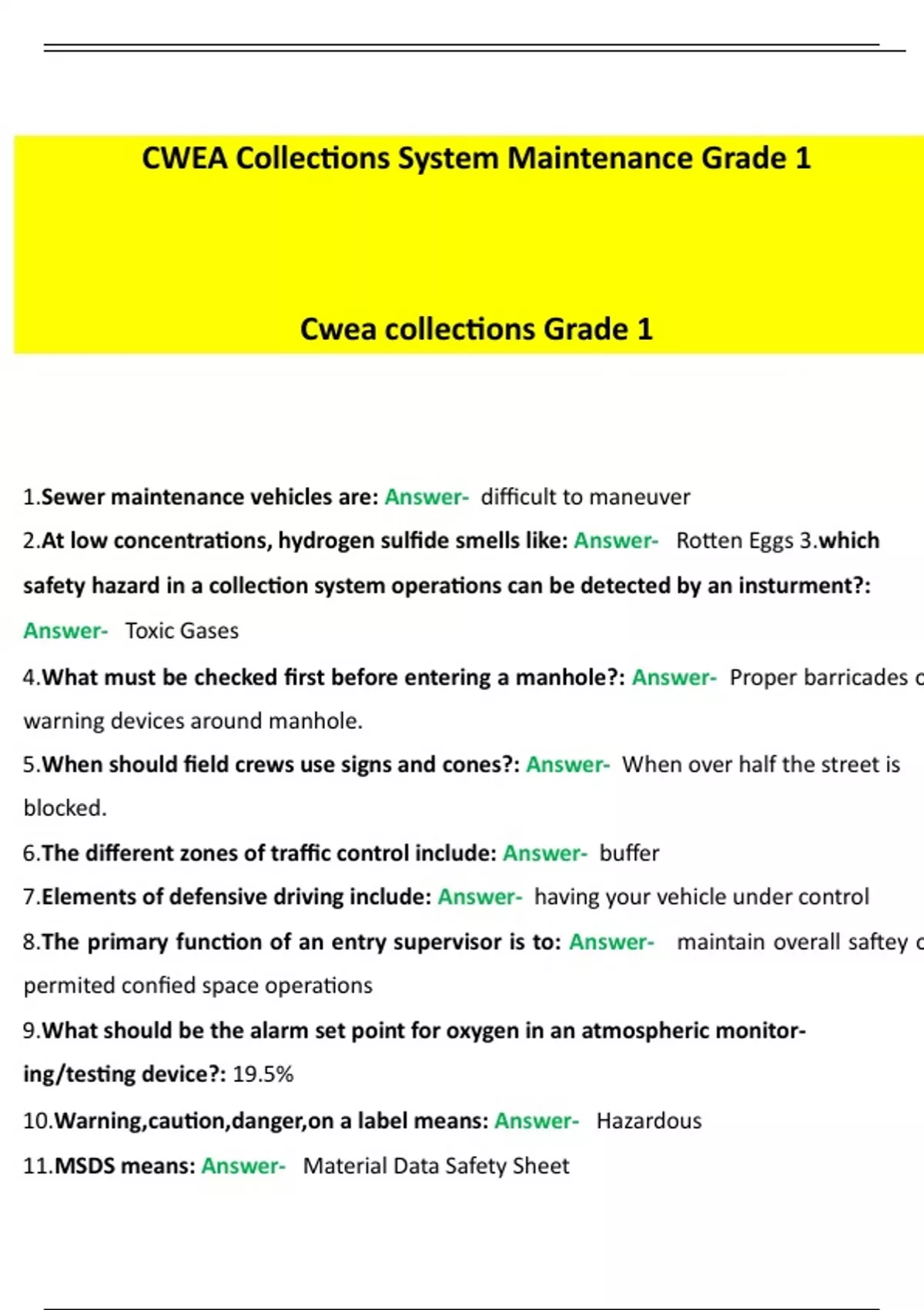 CWEA Collections System Maintenance Grade 1 Cwea collections Grade 1