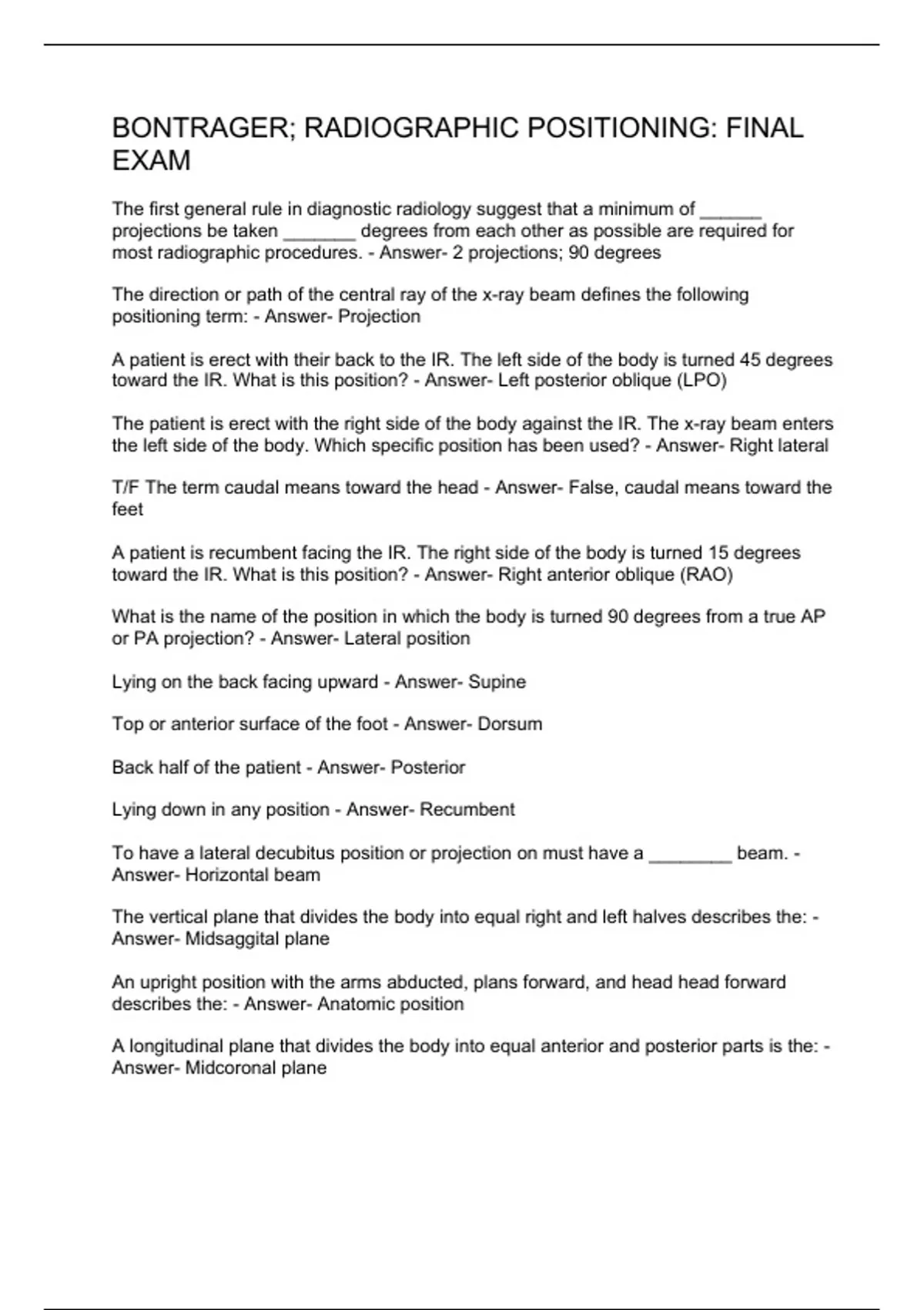 BONTRAGER; RADIOGRAPHIC POSITIONING: FINAL EXAM