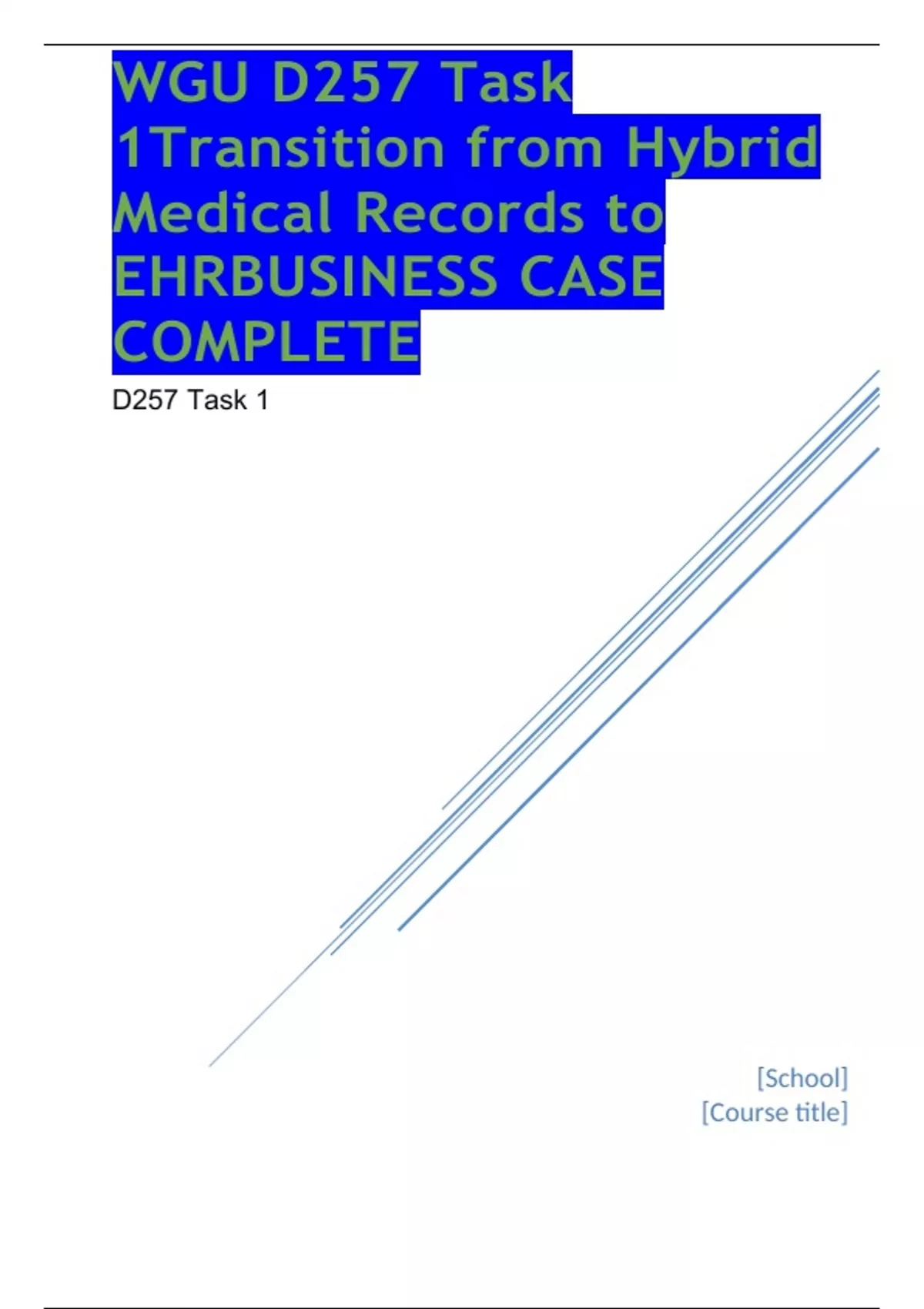 WGU D257 Task 1Transition from Hybrid Medical Records to EHR BUSINESS CASE COMPLETE