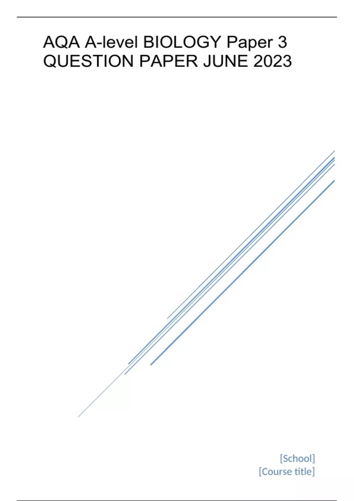 AQA A-level BIOLOGY Paper 3 QUESTION PAPER JUNE 2023