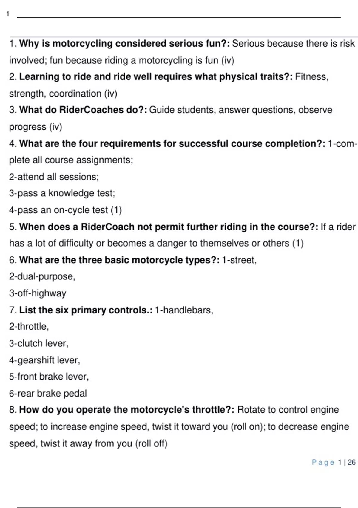MSF BRC RIDER HANDBOOK STUDY QUESTION ANSWERS