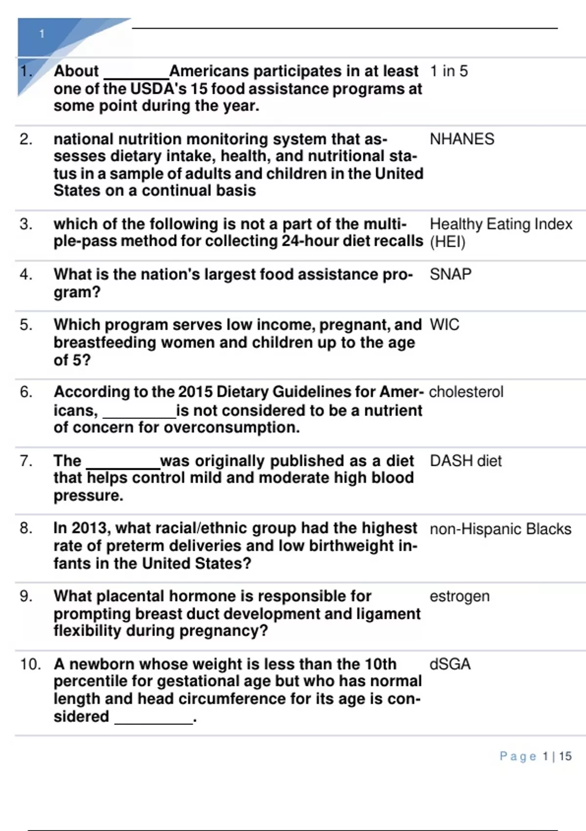 Exam of 15 pages for the course Nursing Pediatrics at Nursing Pediatrics (NUTR 650 EXAM 1.)
