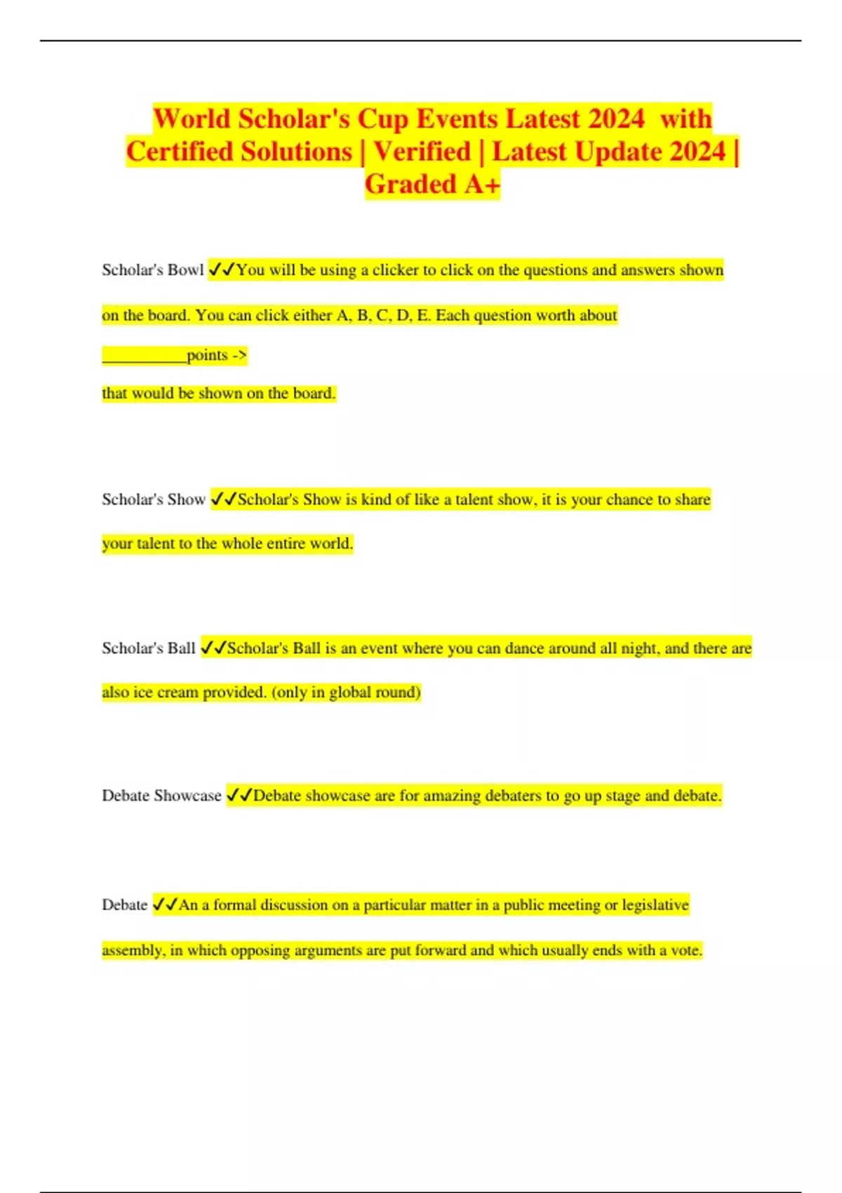 World Scholar's Cup Events Latest 2024 with Certified Solutions | Verified | Latest Update 2024 | Graded A+