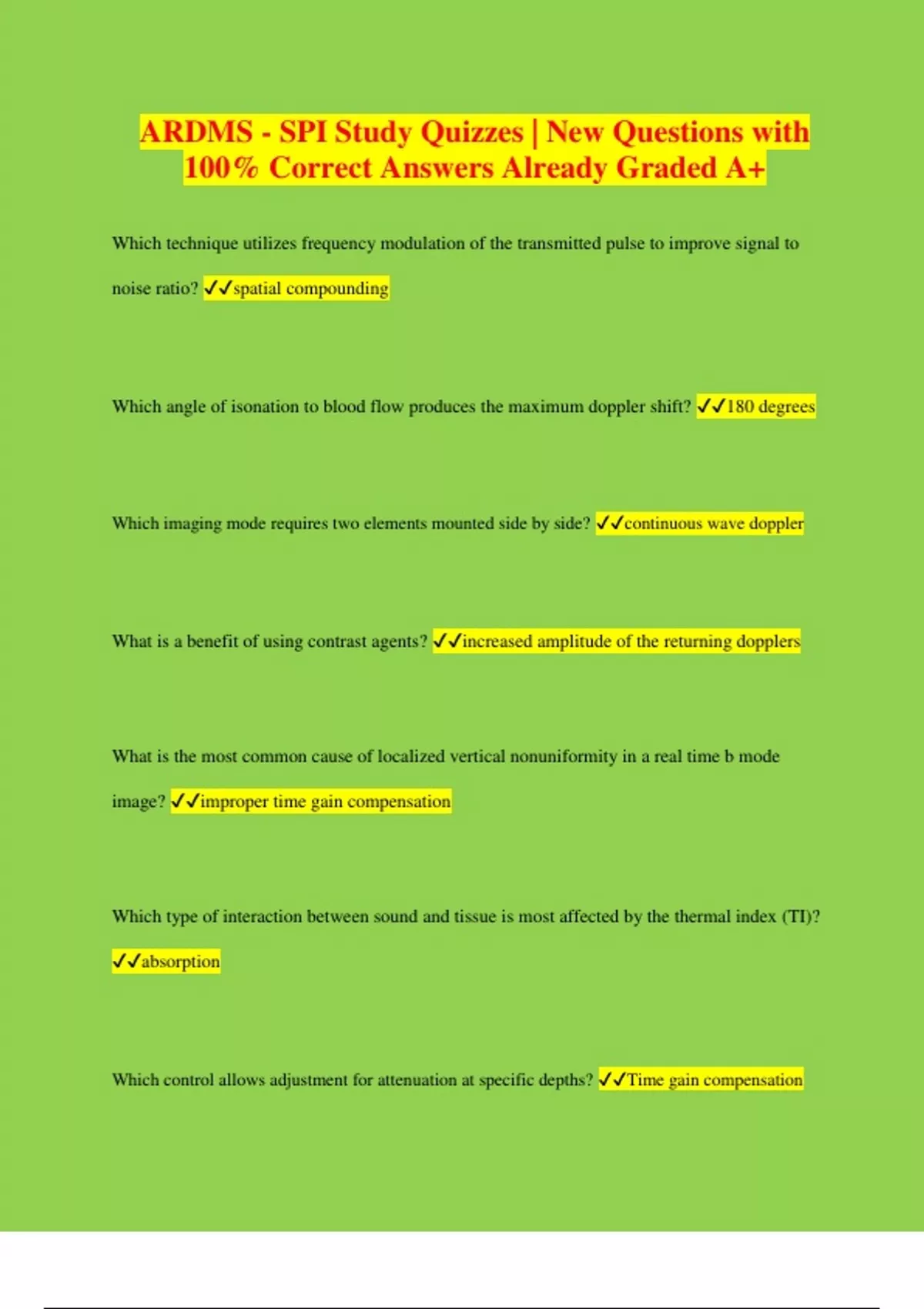 ARDMS - SPI Study Quizzes | New Questions with 100% Correct Answers Already Graded A+