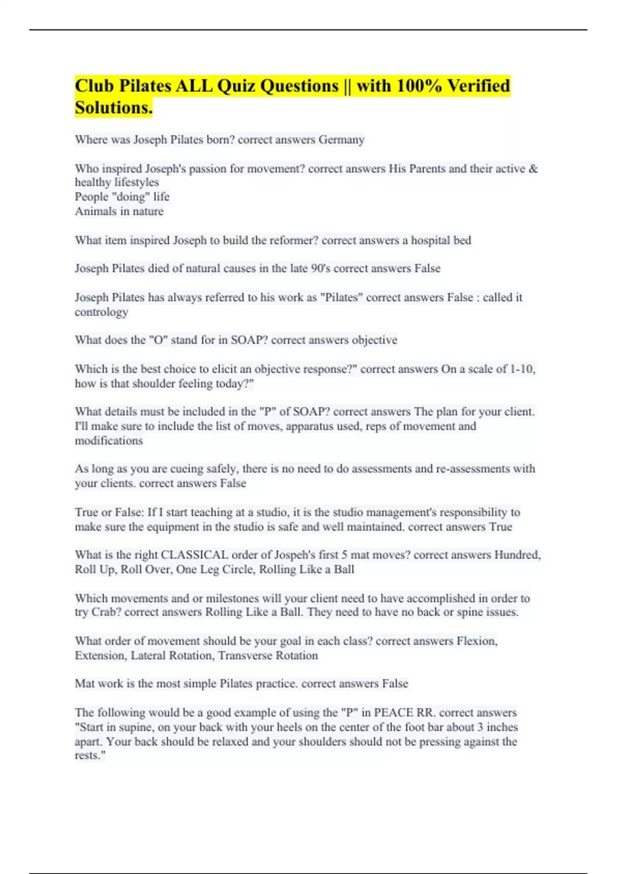 Club Pilates ALL Quiz Questions || with 100% Verified Solutions.