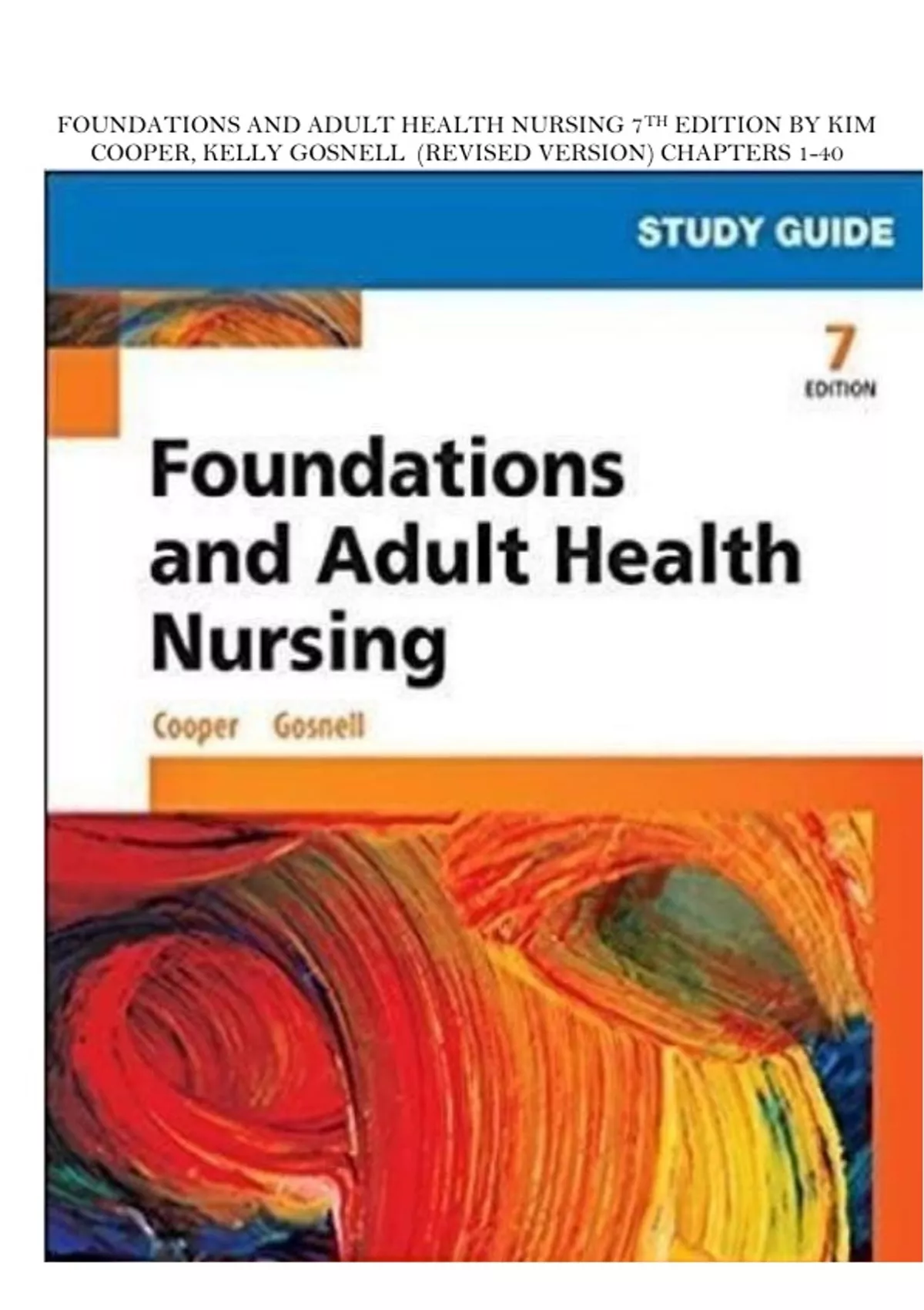 FOUNDATIONS AND ADULT HEALTH NURSING 7TH EDITION BY KIM COOPER, KELLY GOSNELL (REVISED VERSION) CHAPTERS 1-40