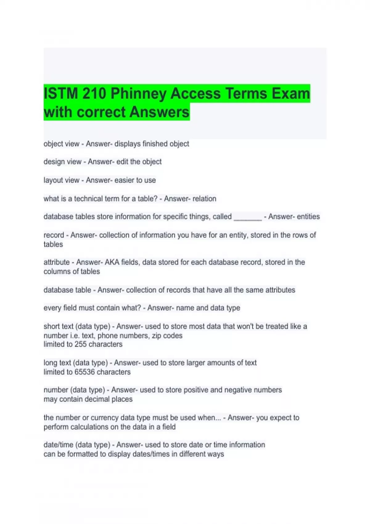 ISTM 210 Phinney Access Terms Exam with correct Answers 2024