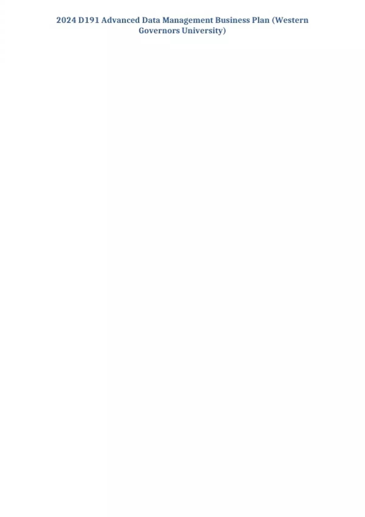 2024 D191 Advanced Data Management Business Plan (Western Governors University)