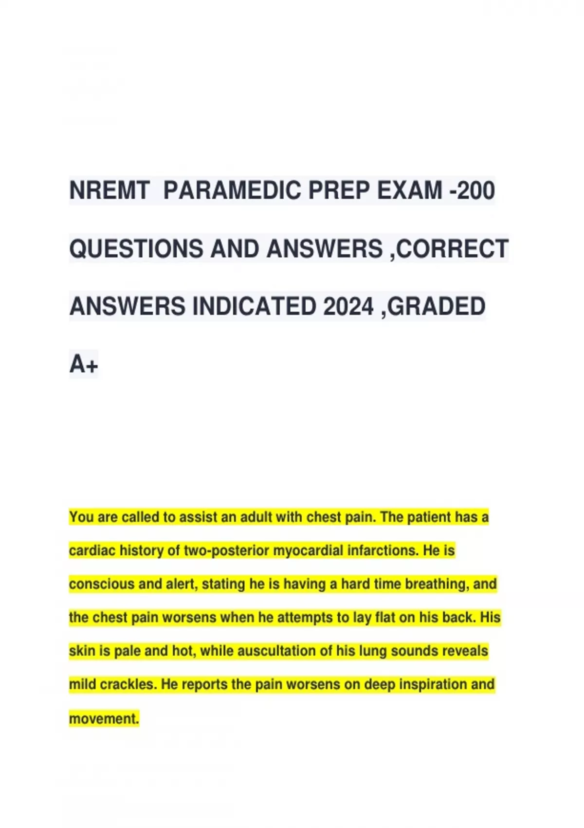 NREMT PARAMEDIC PREP EXAM -200 QUESTIONS AND ANSWERS ,CORRECT ANSWERS INDICATED 2024 ,GRADED A+ NREMT PARAMEDIC PREP EXAM -200 QUESTIONS AND ANSWERS ,CORRECT ANSWERS INDICATED 2024 ,GRADED A+ NREMT PARAMEDIC PREP EXAM -200 QUESTIONS AND ANSWERS ,CORRECT ANSWERS INDICATED 2024 ,GRADED A+ NREMT PARAMEDIC PREP EXAM -200 QUESTIONS AND ANSWERS ,CORRECT ANSWERS INDICATED 2024 ,GRADED A+