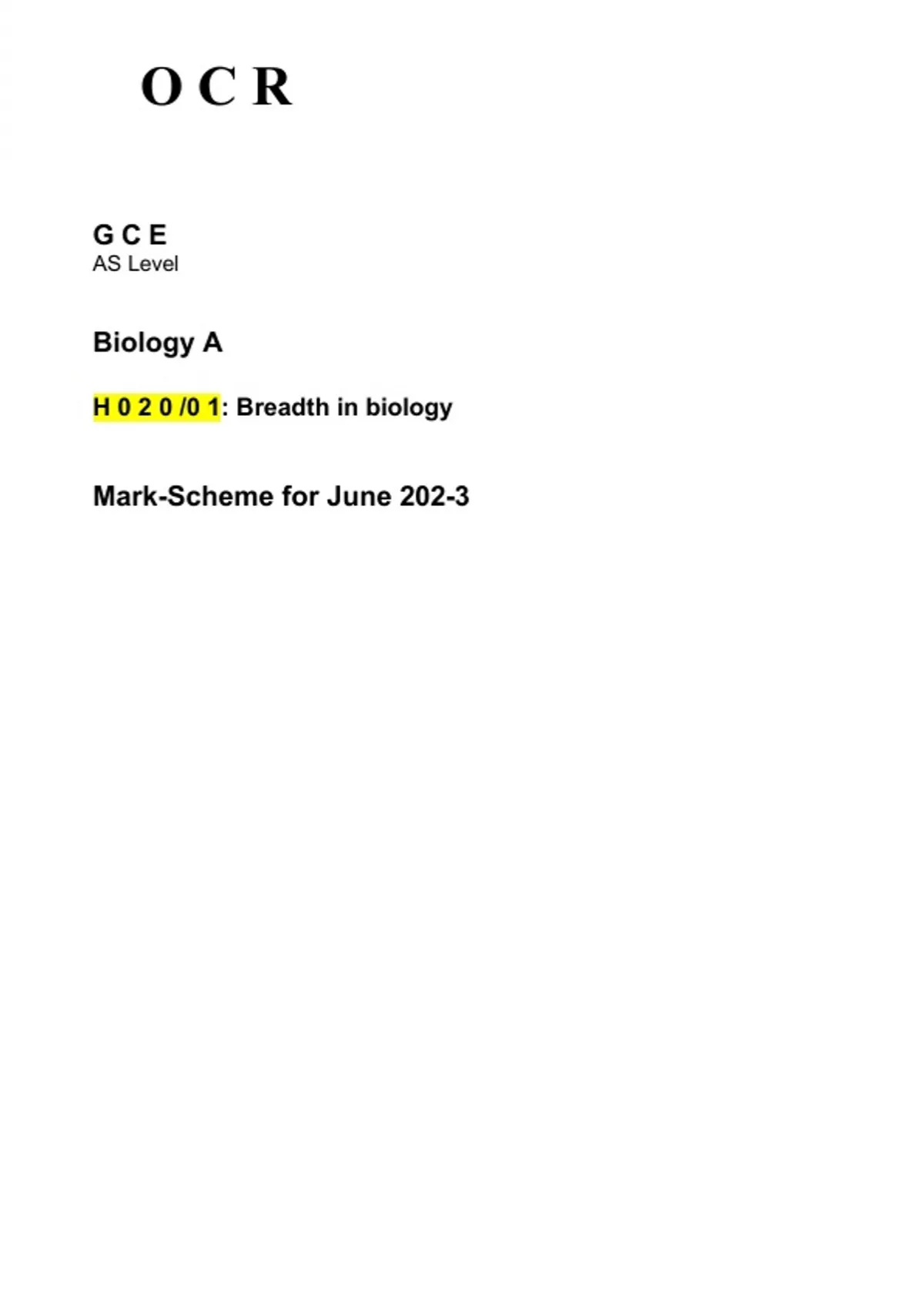 OCR AS Level Biology A paper 1 Mark-scheme June 202-3