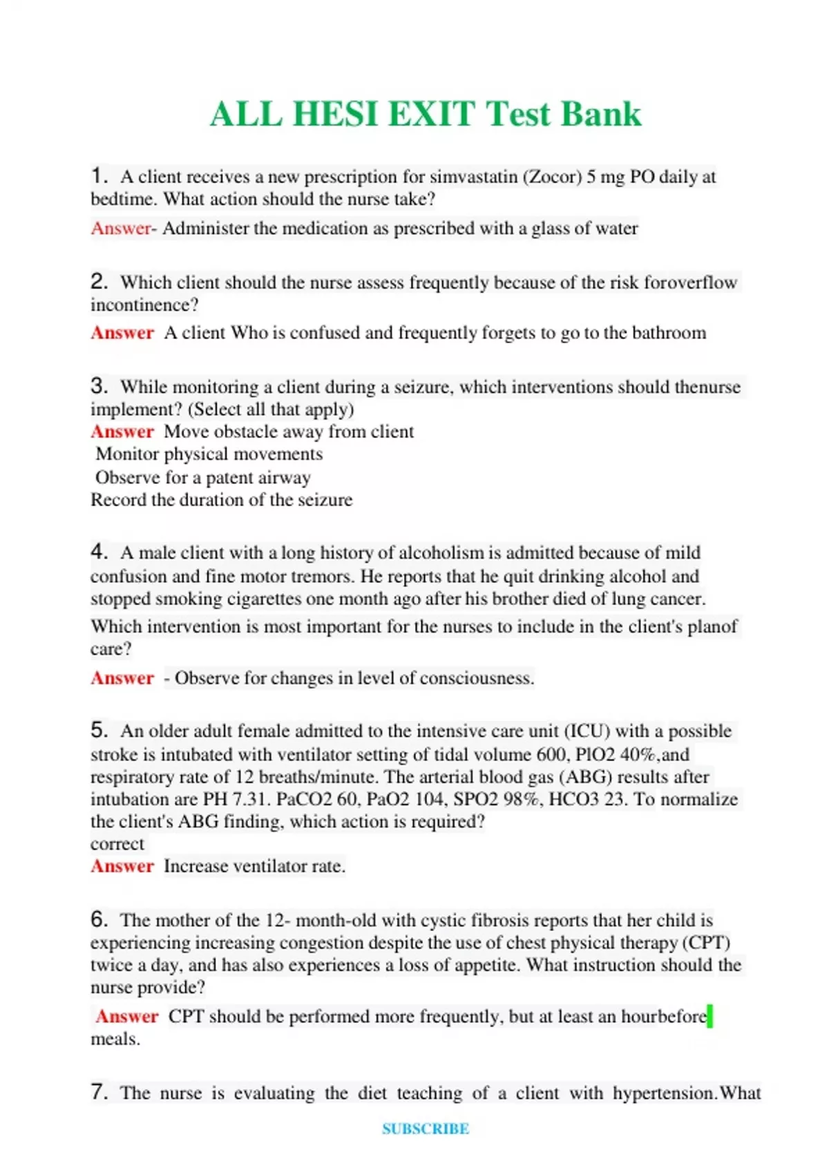 2024 ALL HESI EXIT Test Bank Questions & Answers with rationales