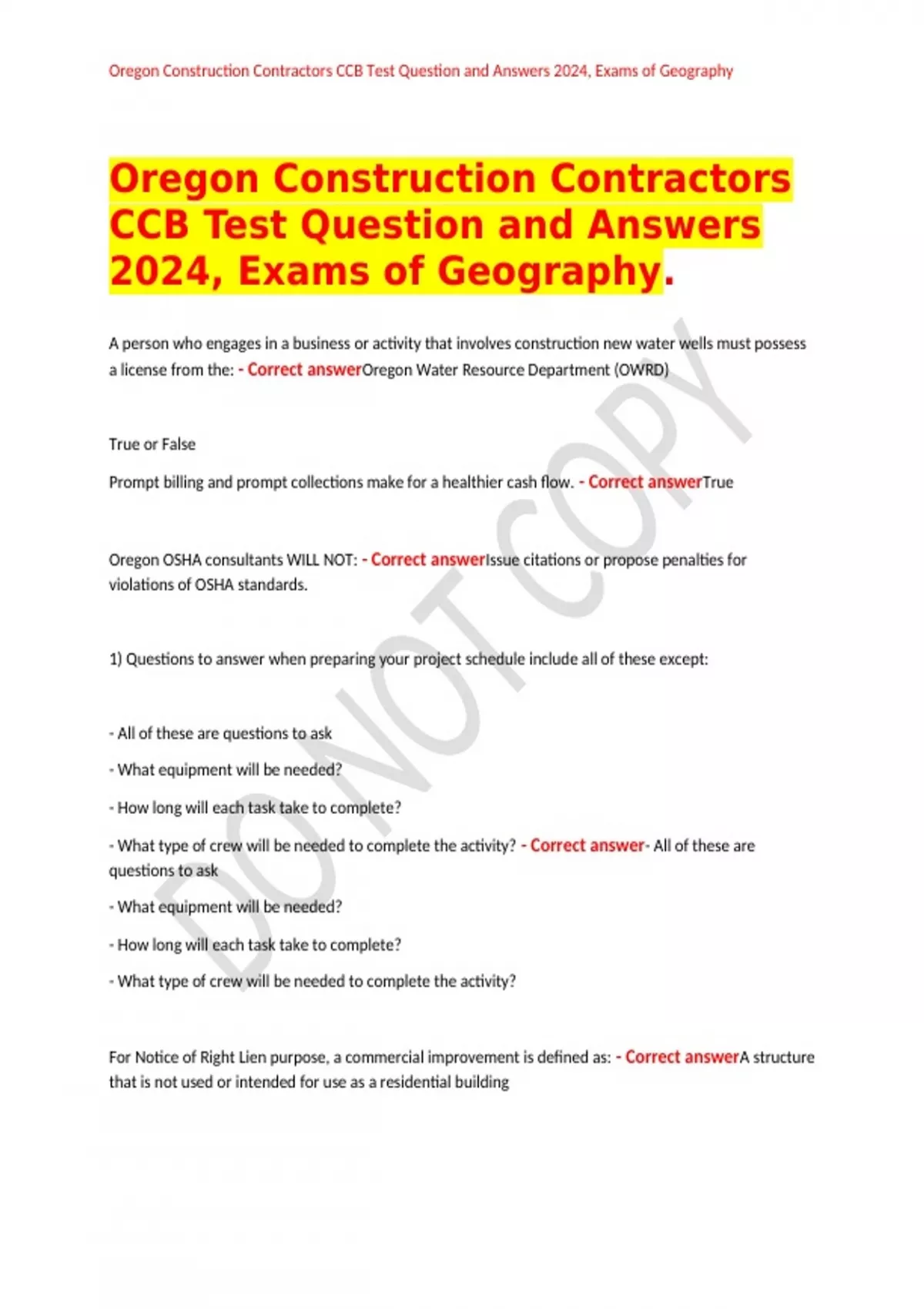 Oregon Construction Contractors CCB Test Question and Answers 2024Oregon Construction Contractors CCB Test Question and Answers 2024Oregon Construction Contractors CCB Test Question and Answers 2024