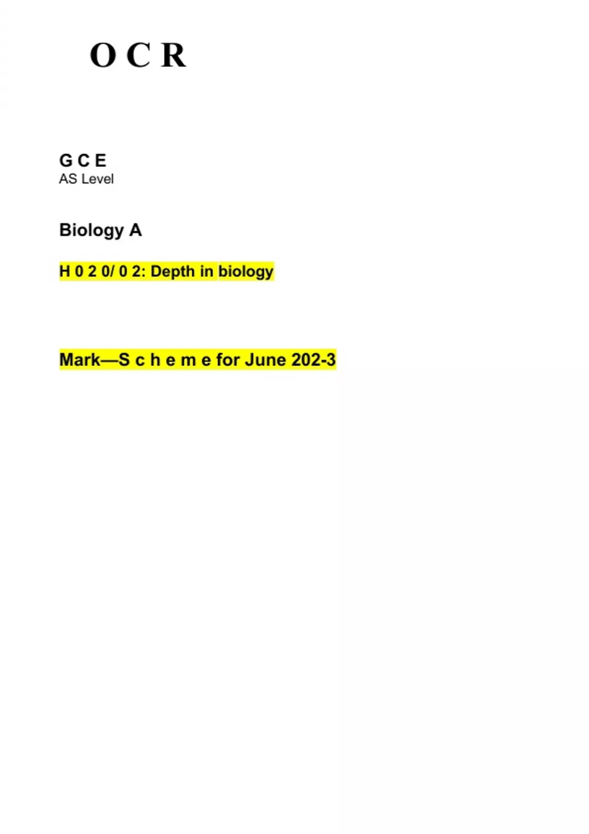 OCR AS Level BIOLOGY A Paper 2 Mark-scheme for June 202-3