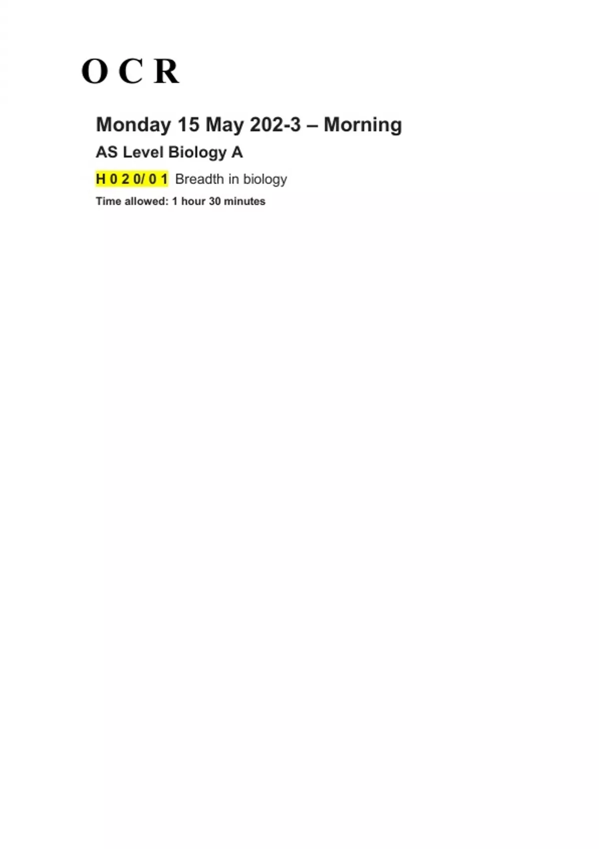 OCR AS Level BIOLOGY A Paper 1 QP for June 202-3