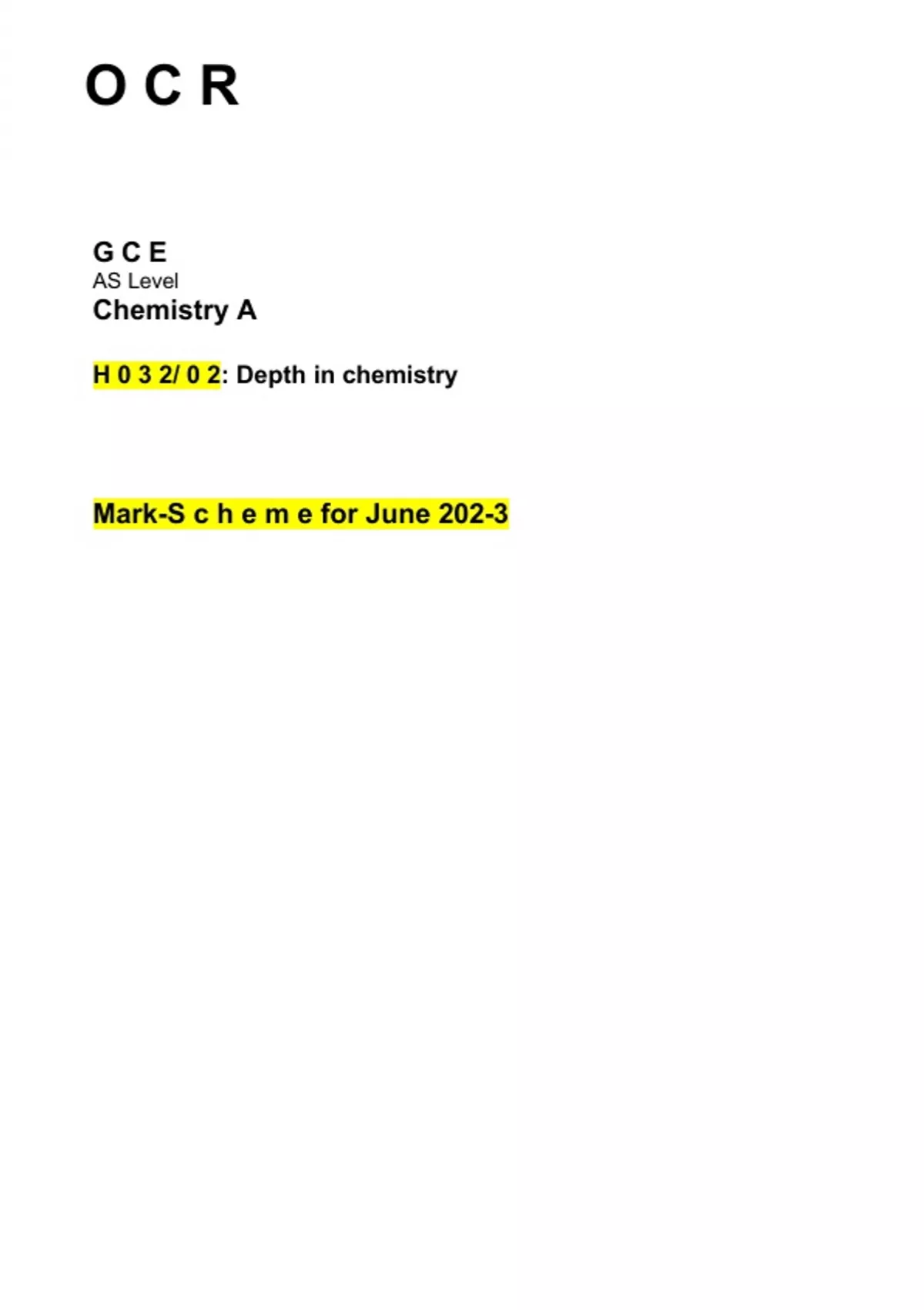 OCR AS Level Chemistry A paper 2 Mark-scheme for June 202-3