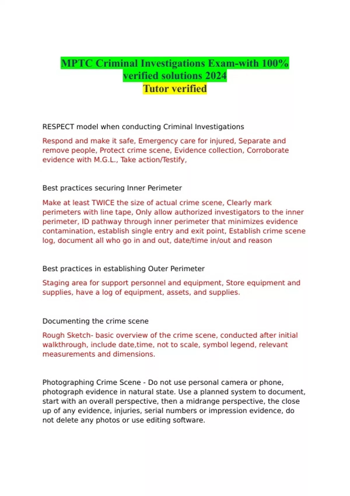 MPTC Criminal Investigations Exam-with 100% verified solutions 2024