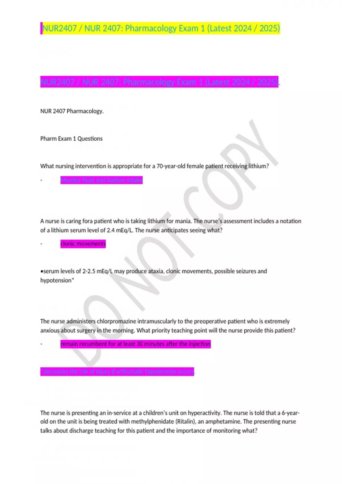 NUR2407 / NUR 2407: Pharmacology Exam 1 (Latest 2024 / 2025)NUR2407 / NUR 2407: Pharmacology Exam 1 (Latest 2024 / 2025)NUR2407 / NUR 2407: Pharmacology Exam 1 (Latest 2024 / 2025)NUR2407 / NUR 2407: Pharmacology Exam 1 (Latest 2024 / 2025)