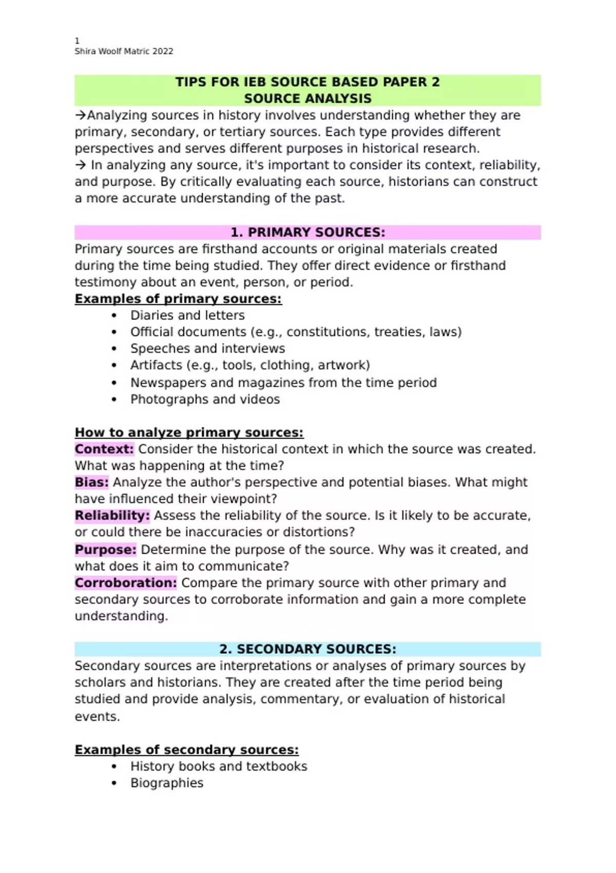 Summary IEB Source Based paper source analysis tips