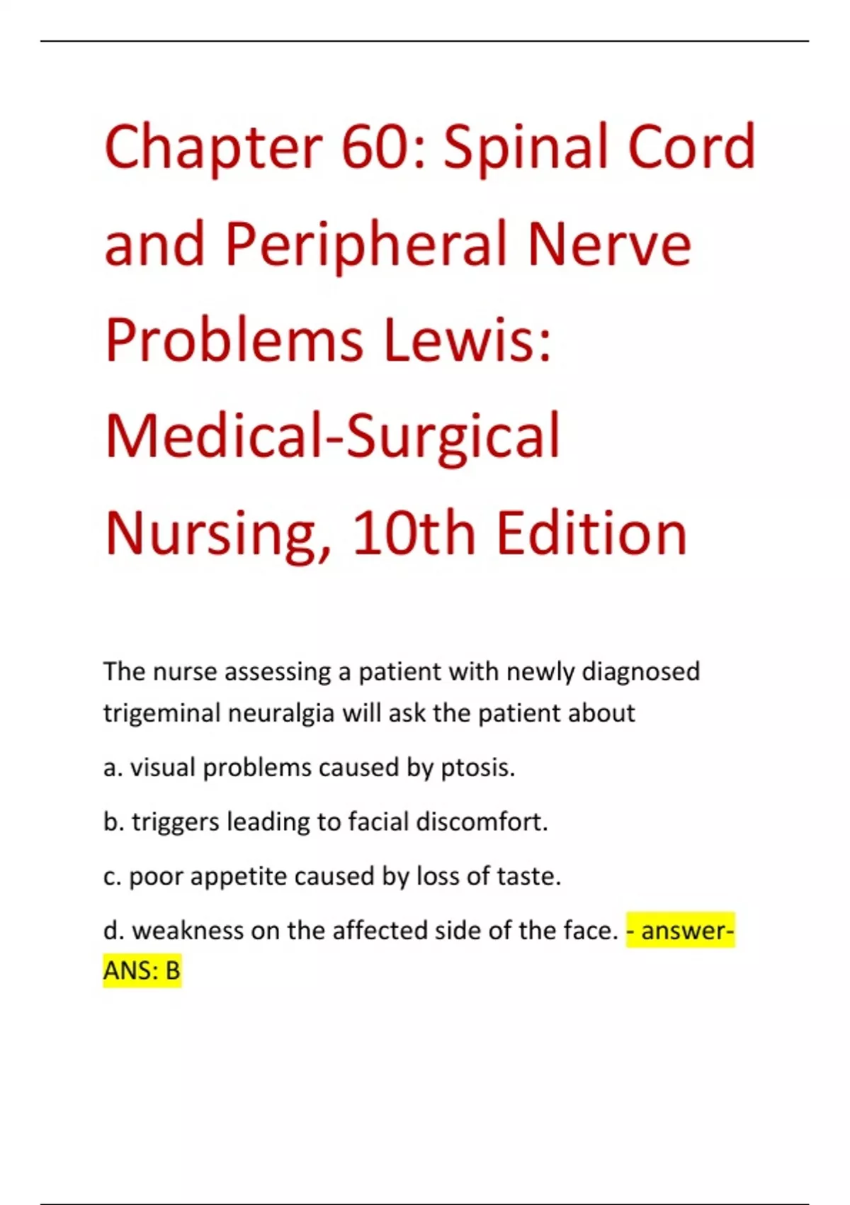 Chapter 60: Spinal Cord and Peripheral Nerve Problems Lewis: Medical-Surgical Nursing, 10th Edition