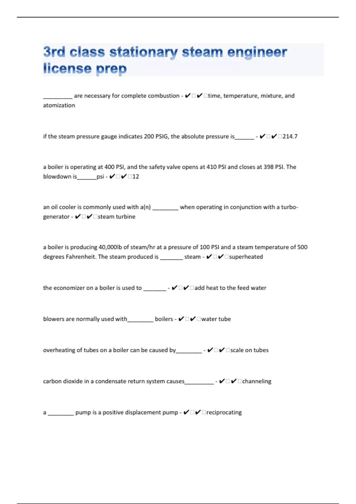 3rd class stationary steam engineer 250 license prep Questions with 100% Correct Answers | Verified | Latest Update