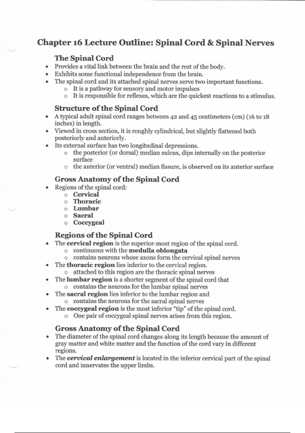 Class notes from Human Anatomy