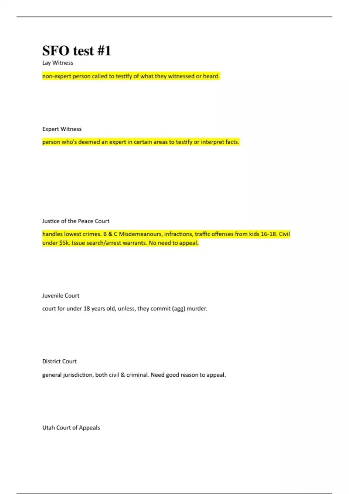 Lay Witness non-expert person called to testify of what they witnessed or heard. Expert Witness person who's deemed an expert in certain areas to testify or interpret facts.