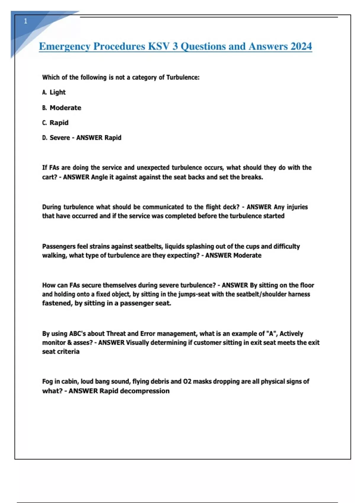 Emergency Procedures KSV 3 Questions and Answers 2024